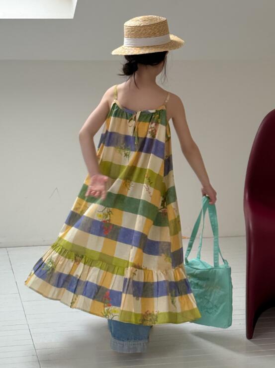 爽やかなボーダー柄に可愛い花柄をあしらった、おしゃれなキャミソール型ワンピース。