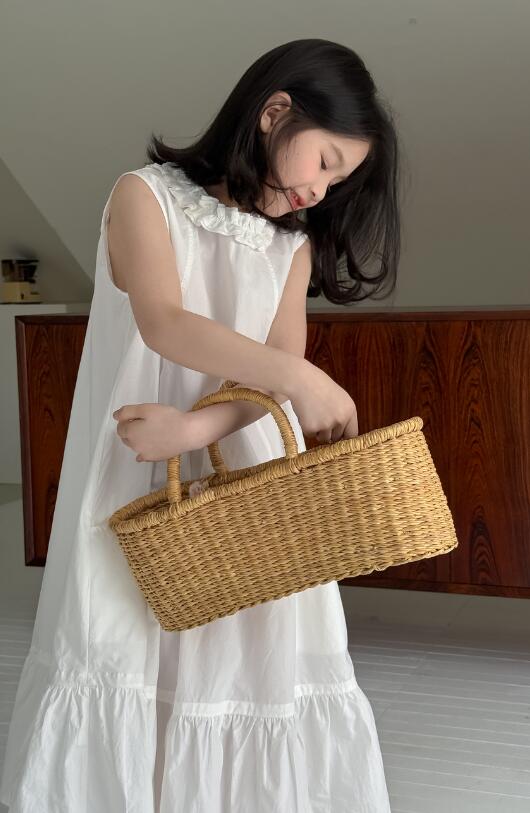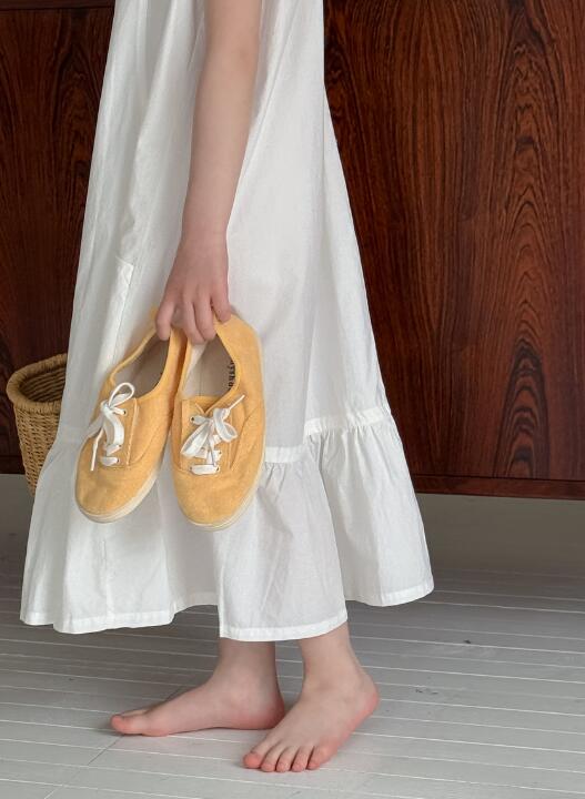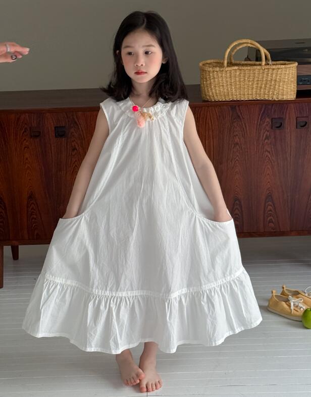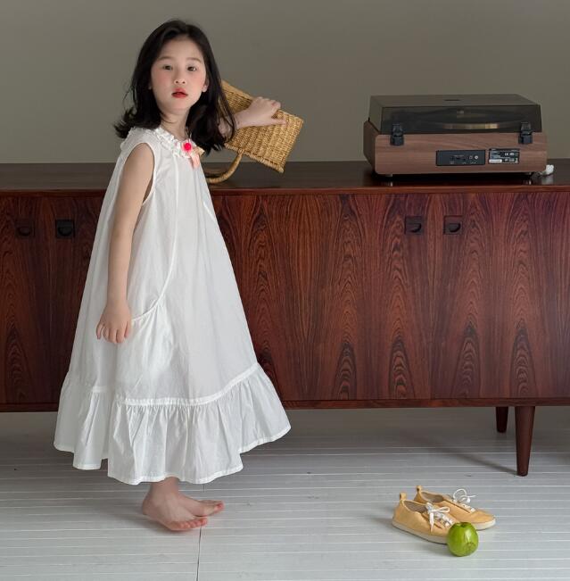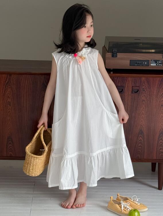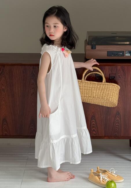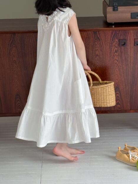 上品な白色が美しいキッズ用ロングワンピースが新登場。