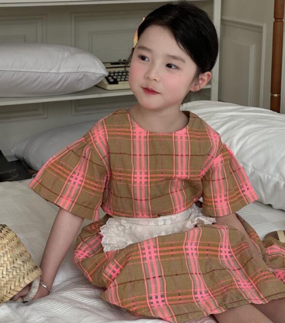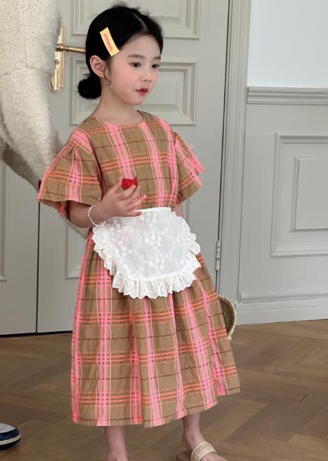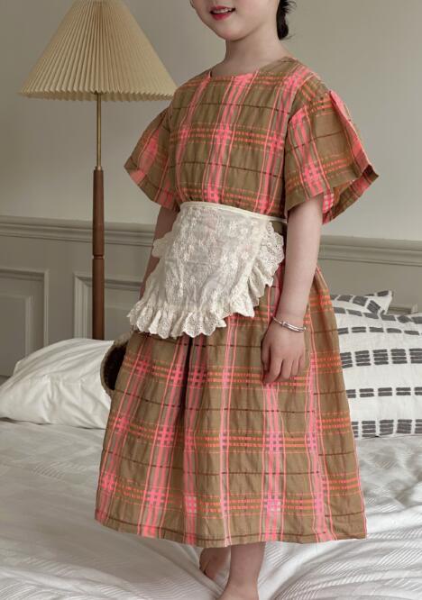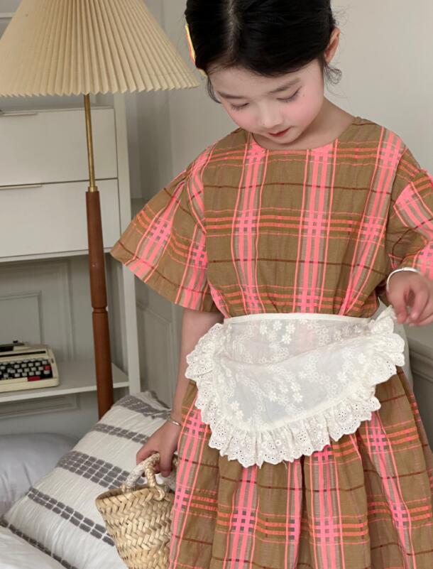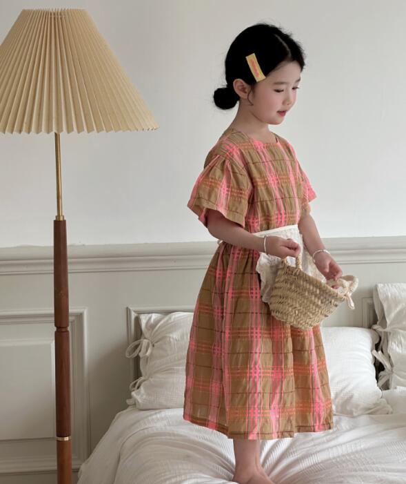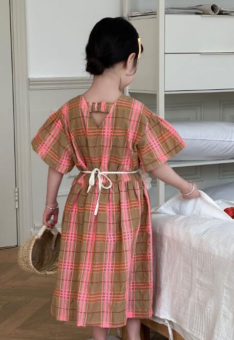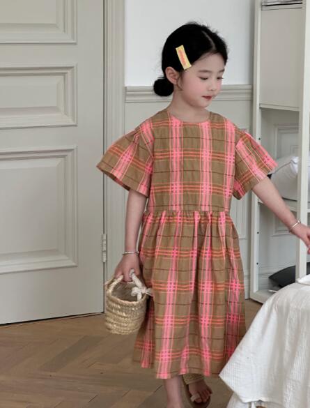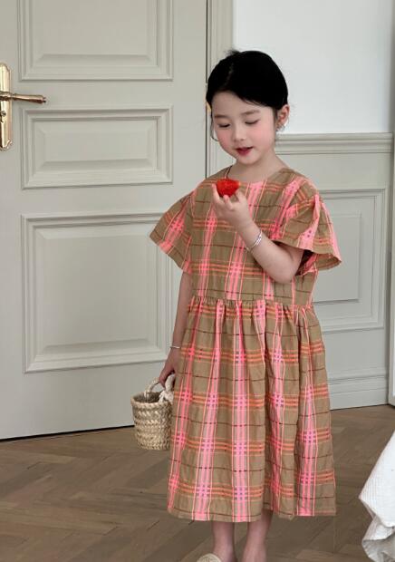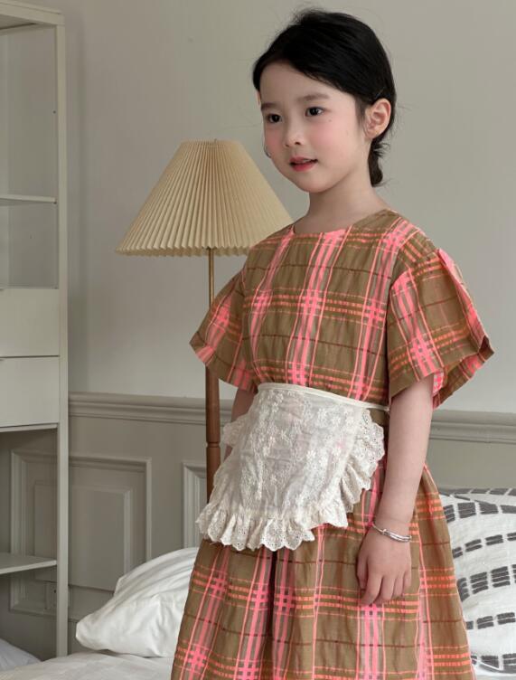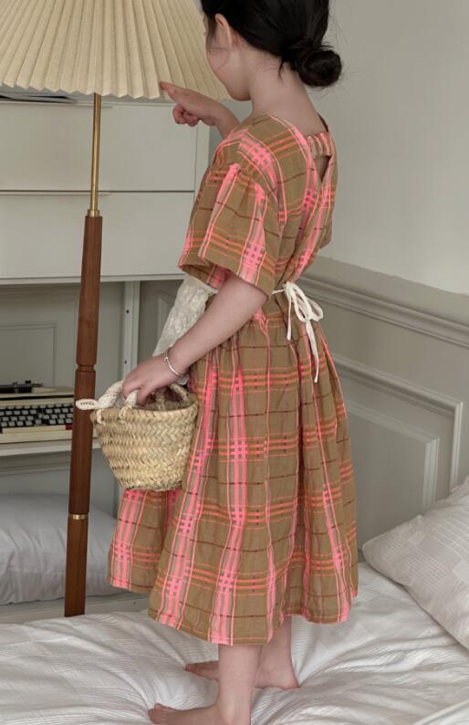 可愛いピンクとブラウンのチェック柄が上品で、半袖デザインで涼しく快適に過ごせます。
