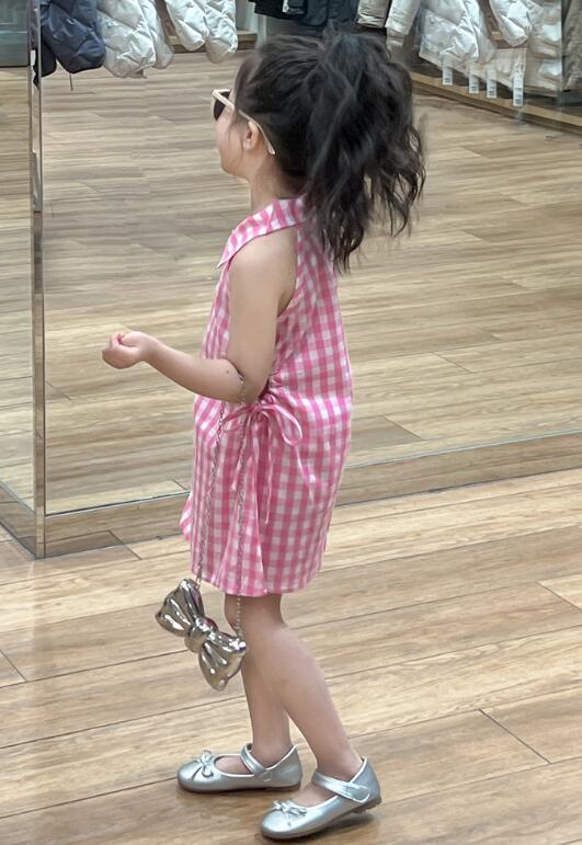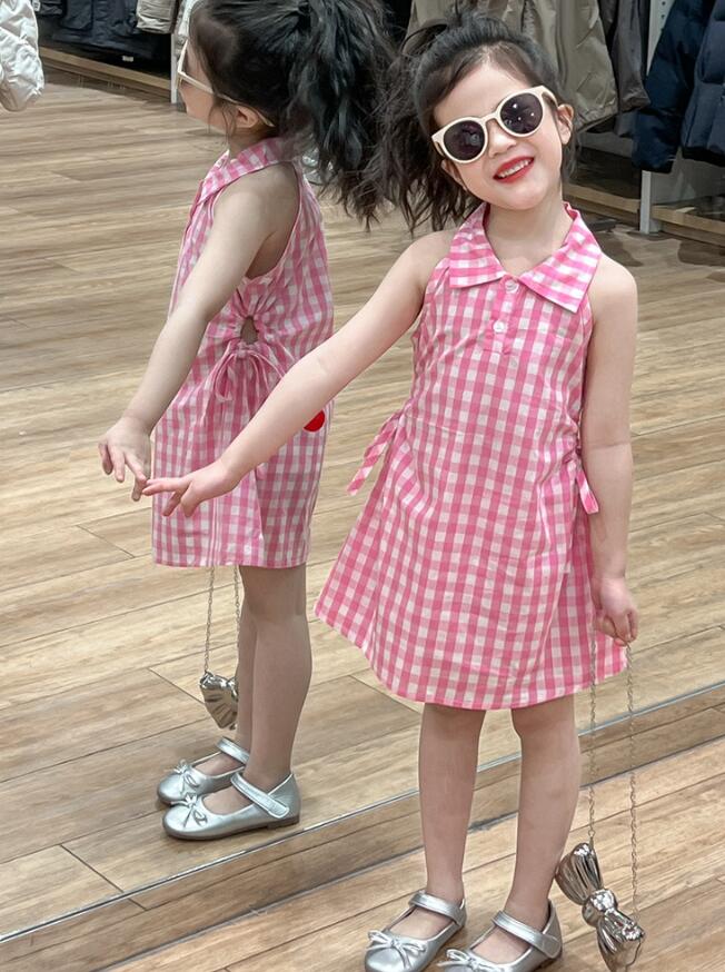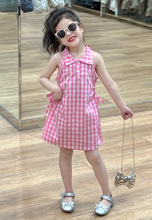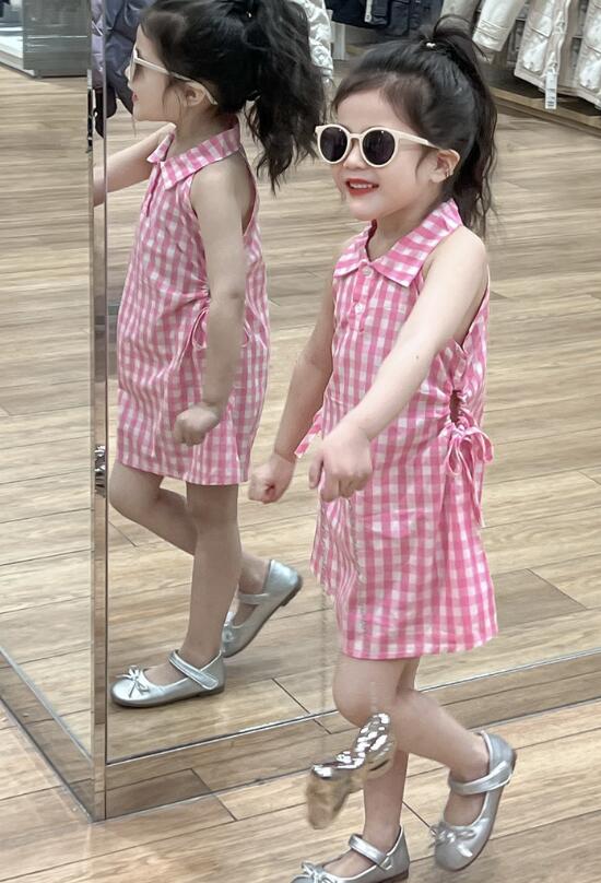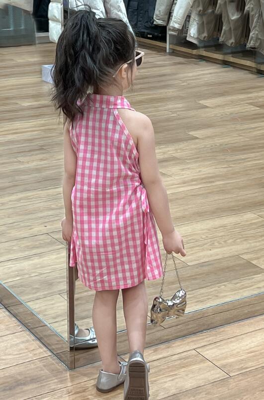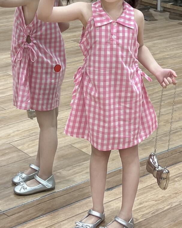可愛らしいピンクのギンガムチェック柄が印象的なキッズ用ロングワンピースです。