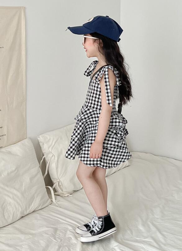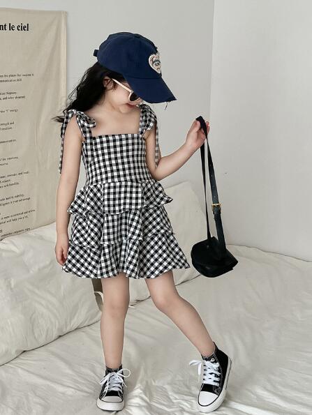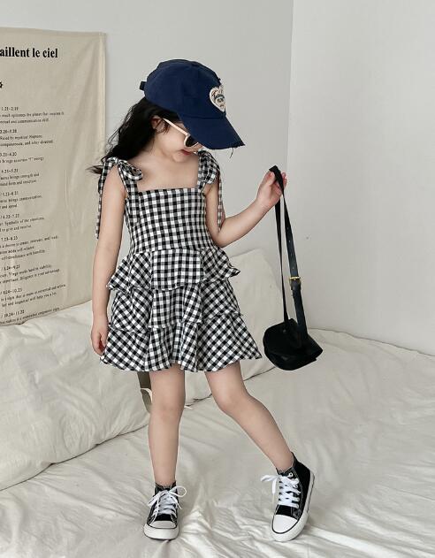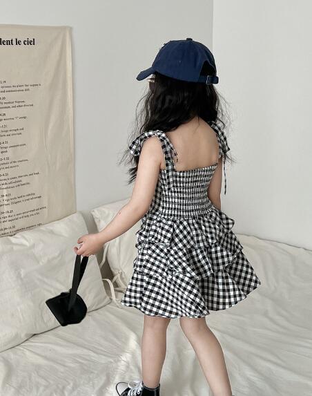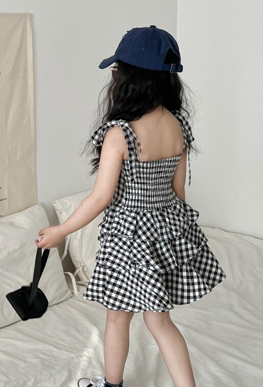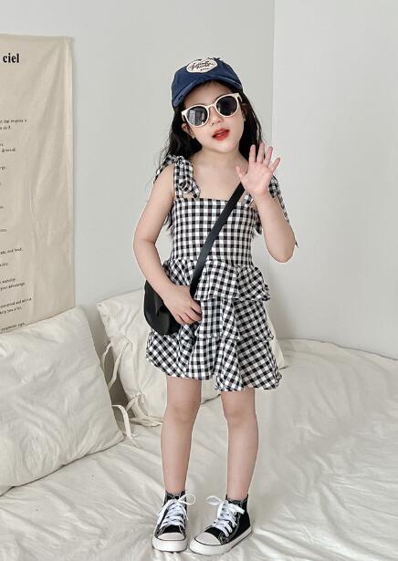 今年注目のギンガムチェック柄が可愛いキッズ用ロングワンピースです。