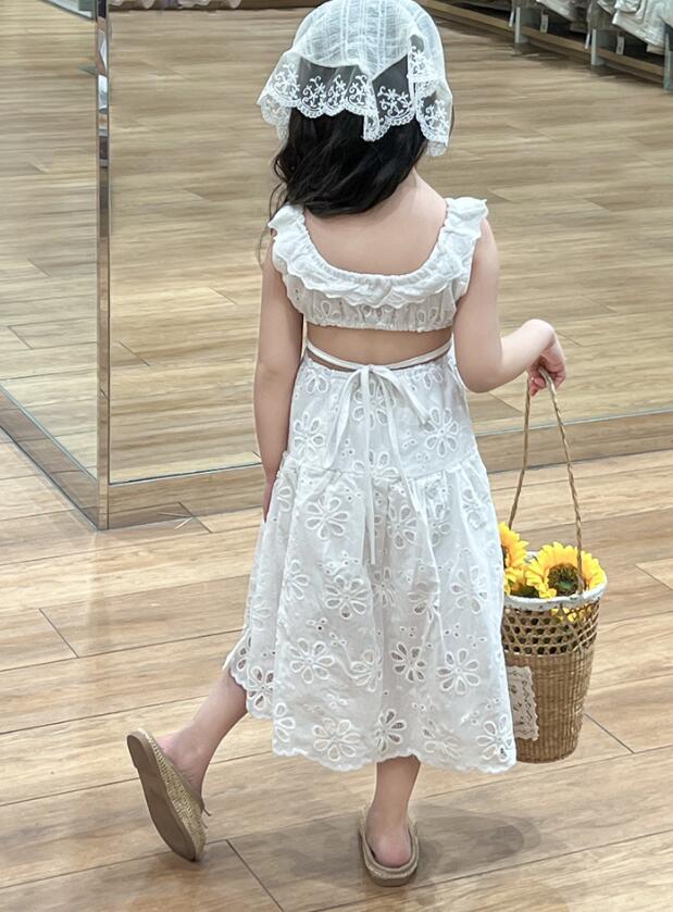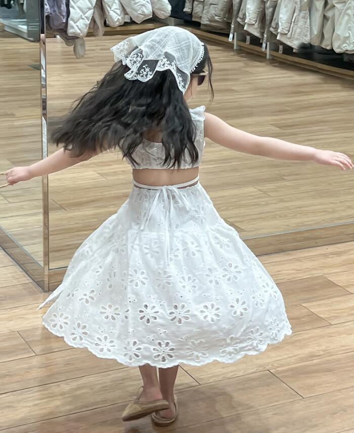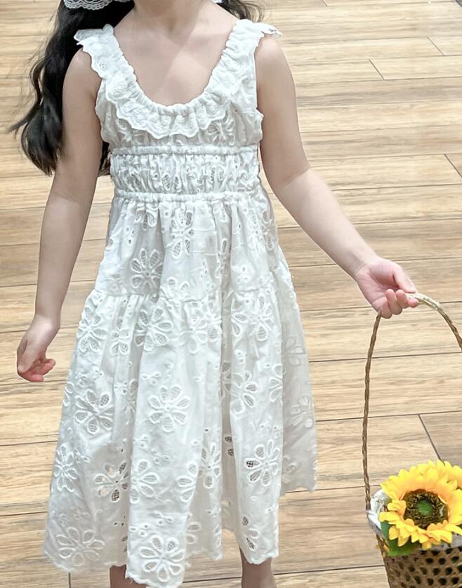 美しい白色の刺繍レース生地を使用し、花柄の透かし模様が上品で可愛らしい印象を演出します。