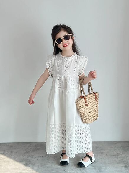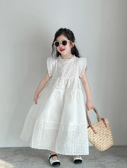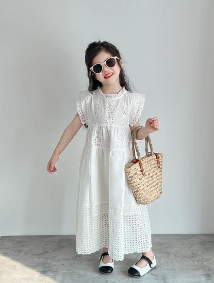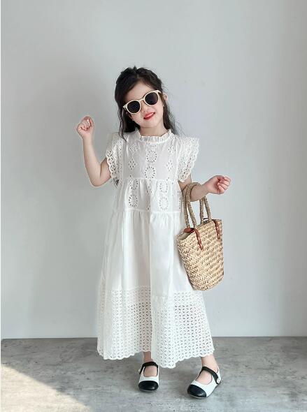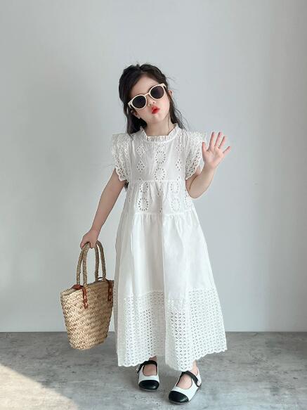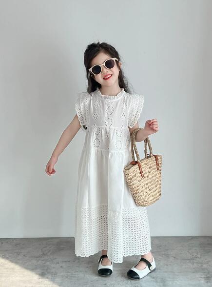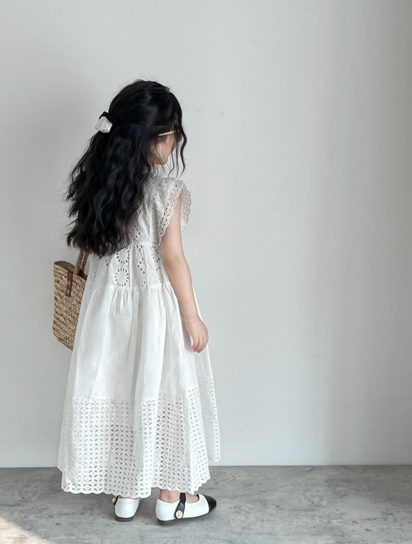 上品な白色の刺繍レースが美しいキッズ用ロングワンピースです。