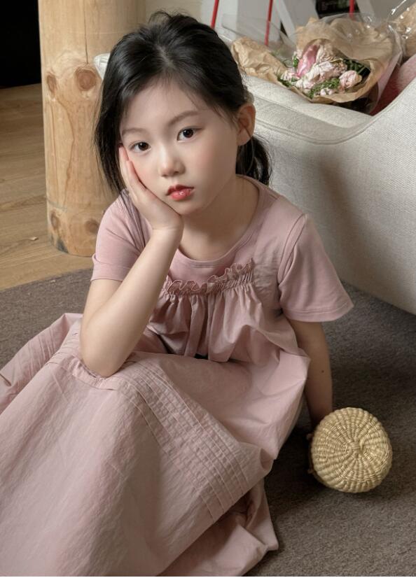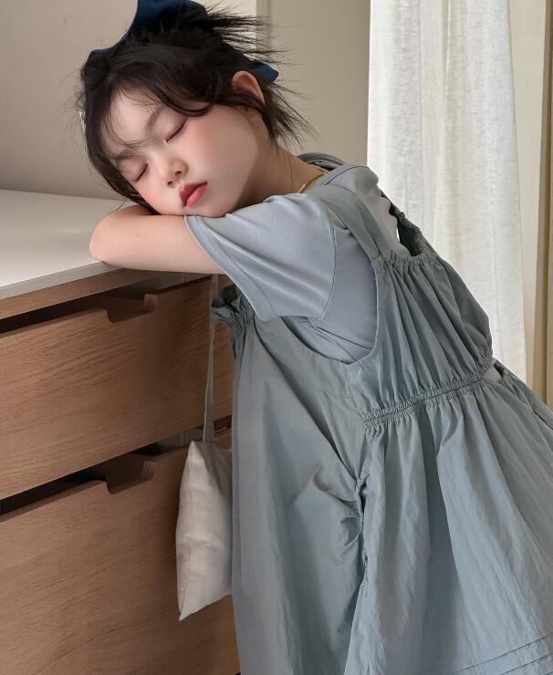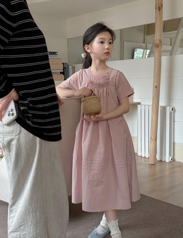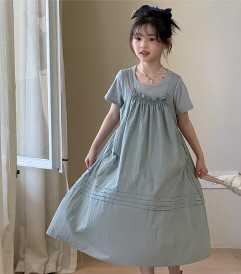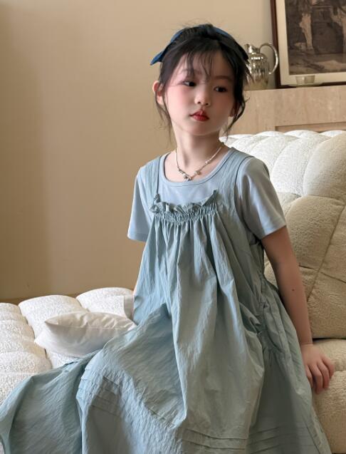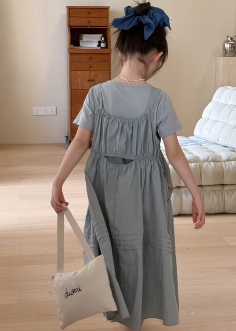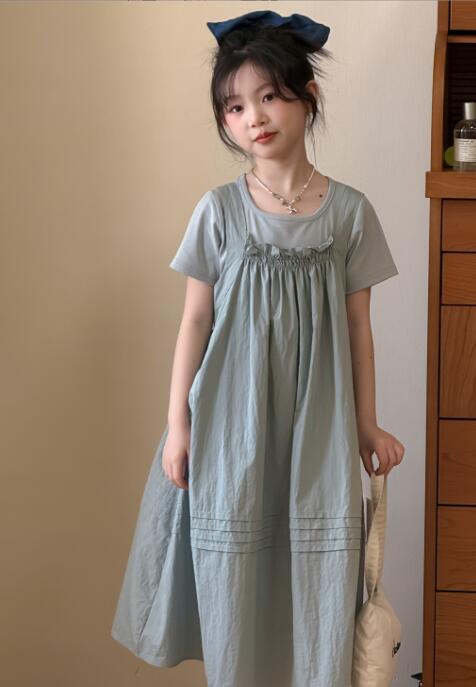 2025年新作のキッズ向け重ね着風ロングワンピースです。