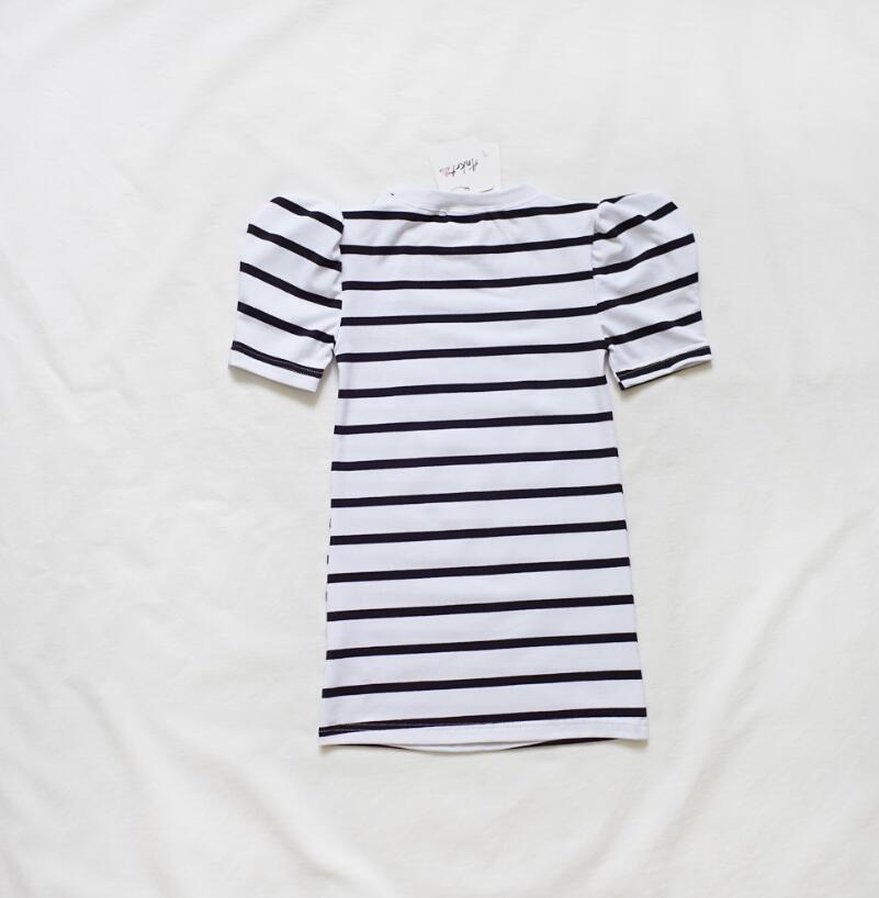 白地に黒のストライプが映える、おしゃれで上品な韓国風デザインです。