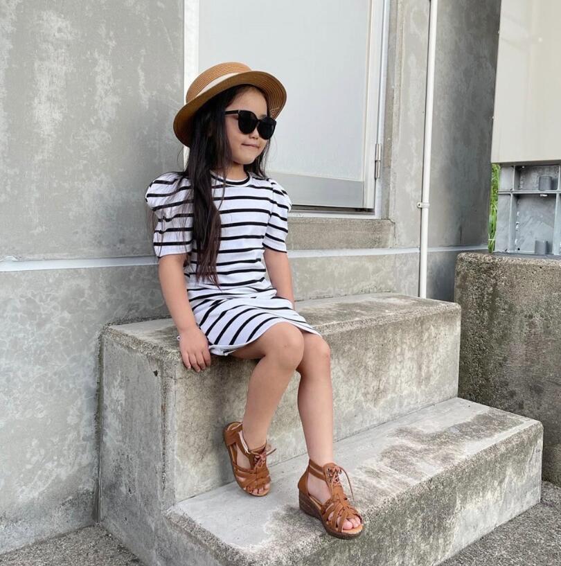今季注目のキッズ用ボーダー柄ワンピースが登場。