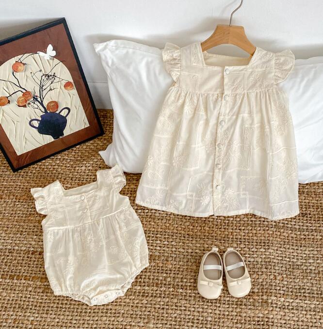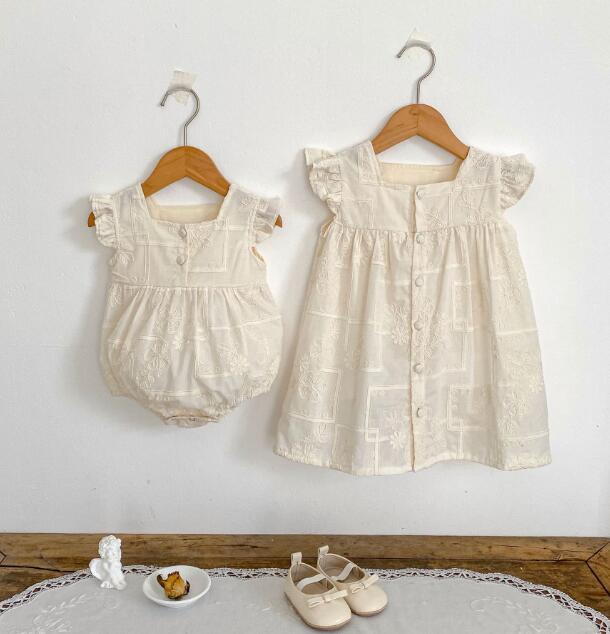 上品な刺繍が美しいキッズ向け韓国風デザインの姉妹お揃いセット。