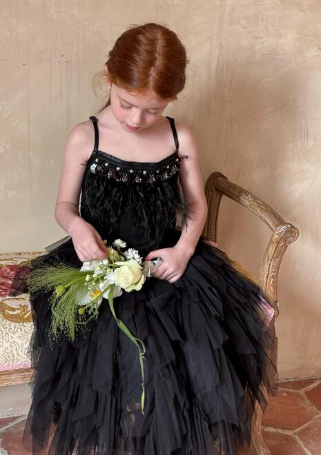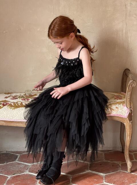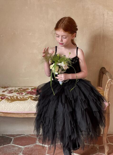 特別な日にぴったりなキッズ用黒色ロングワンピースです。