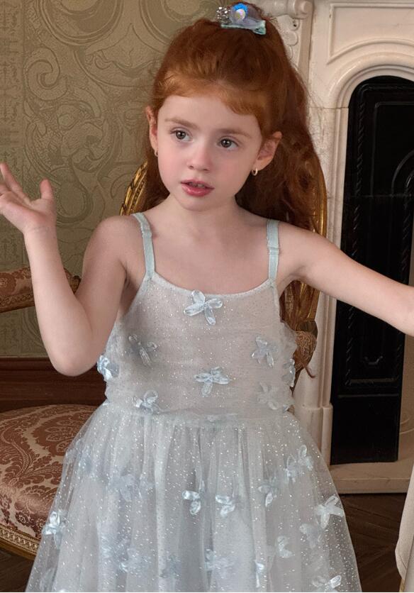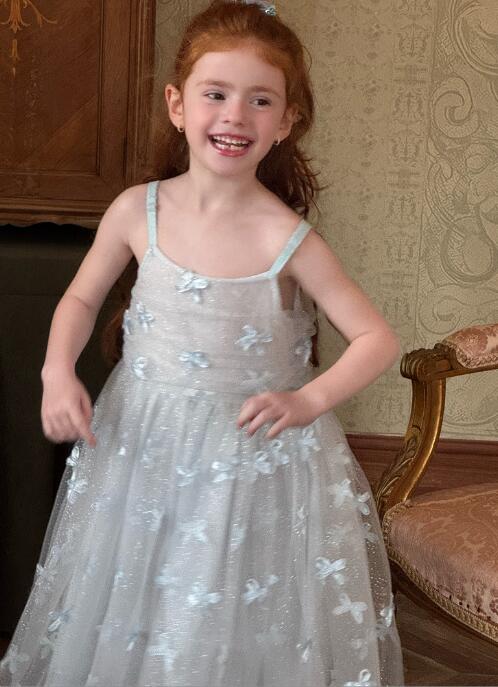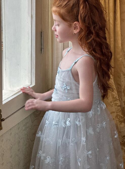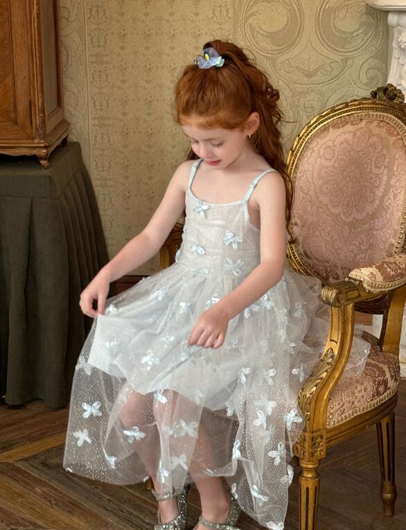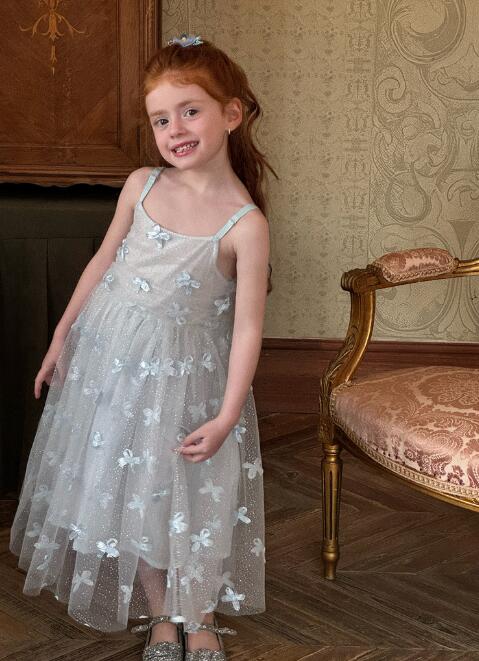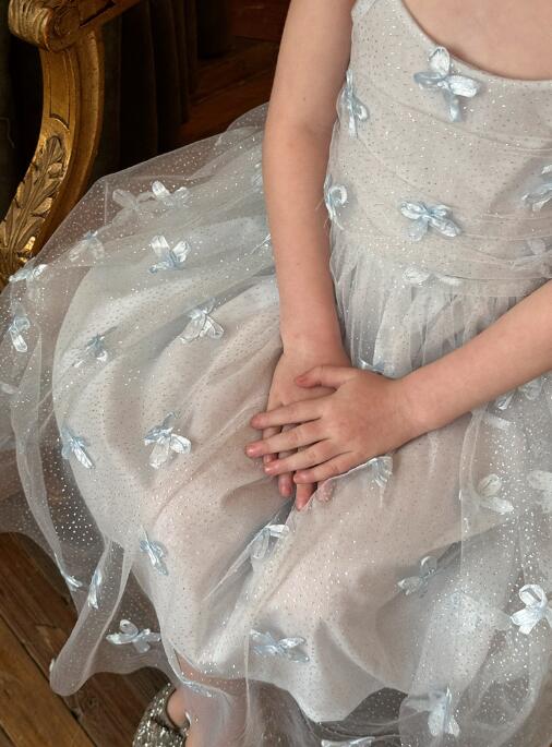 繊細な花の刺繍とチュール素材が女の子らしさを演出します。