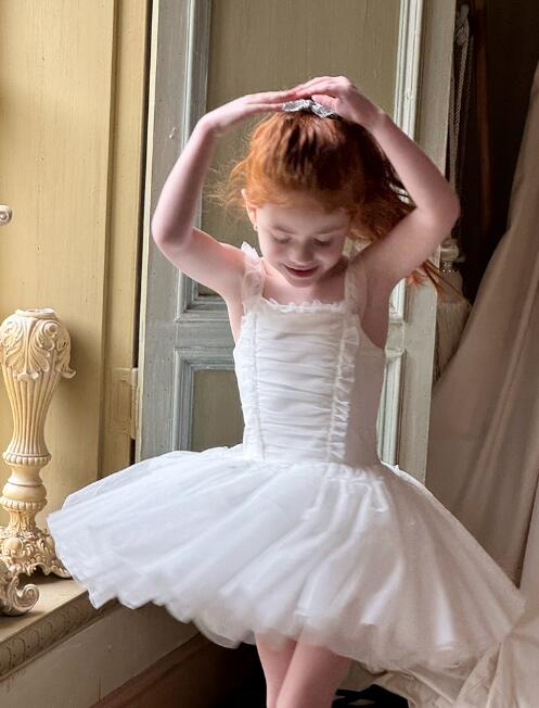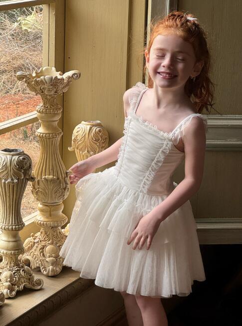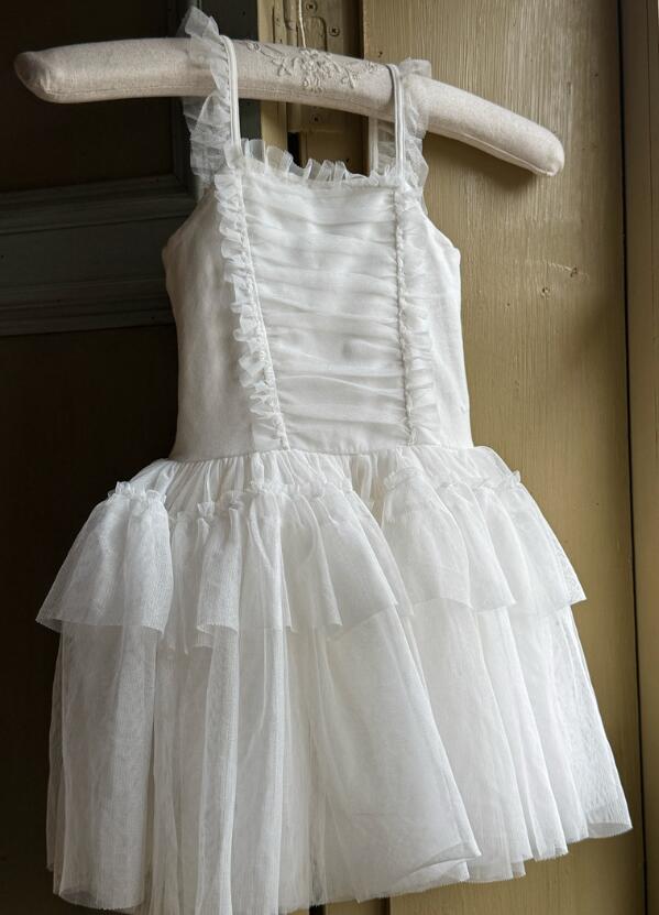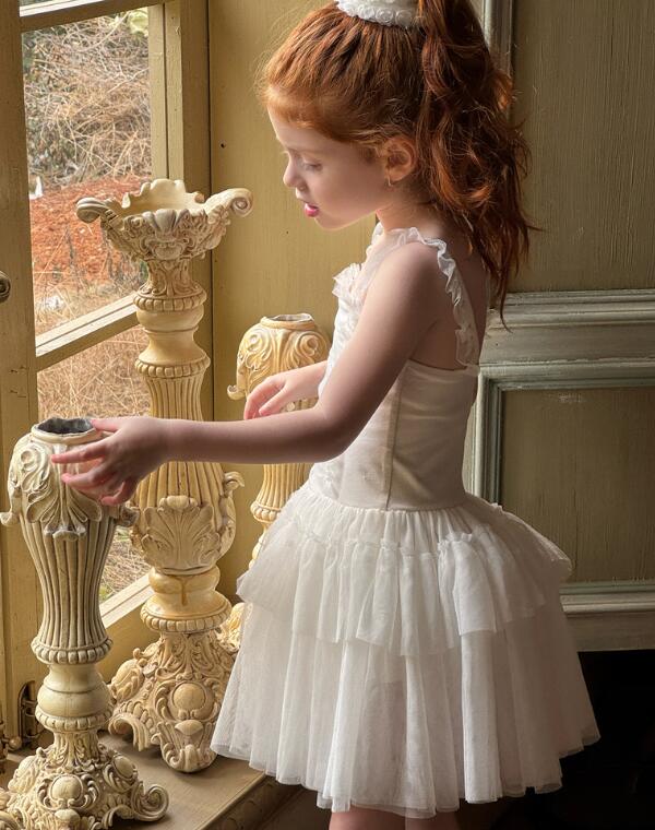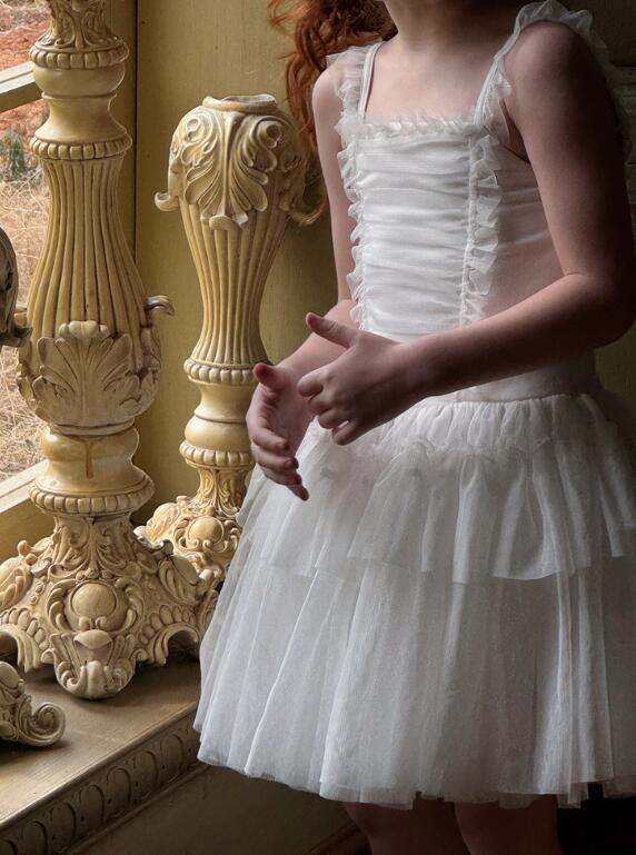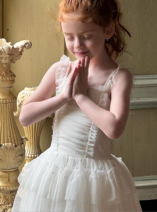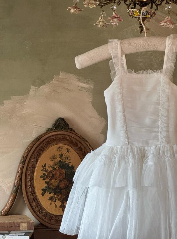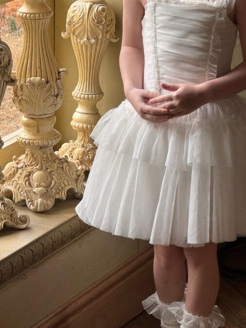 上品な白い花紗素材を使用したキッズ向けプリンセスワンピースです。
