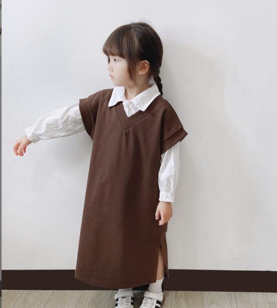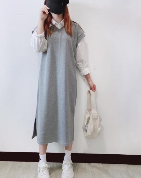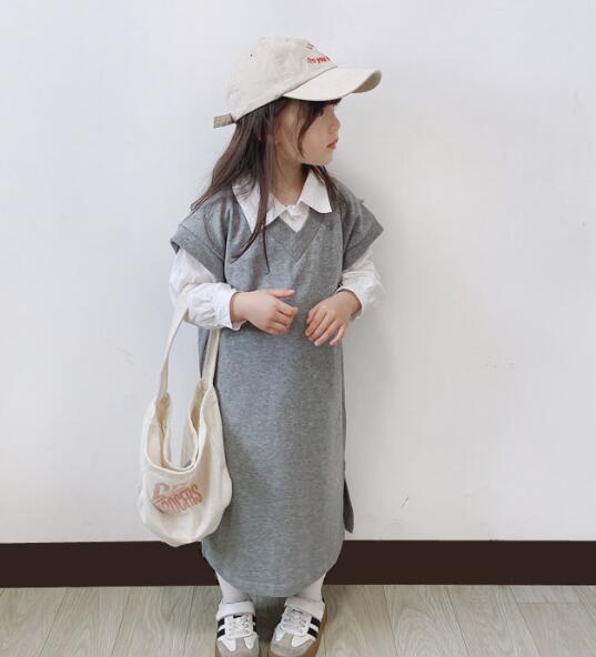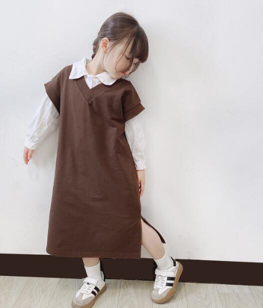 ベストとシャツの重ね着風デザインで、一枚でおしゃれに決まります。