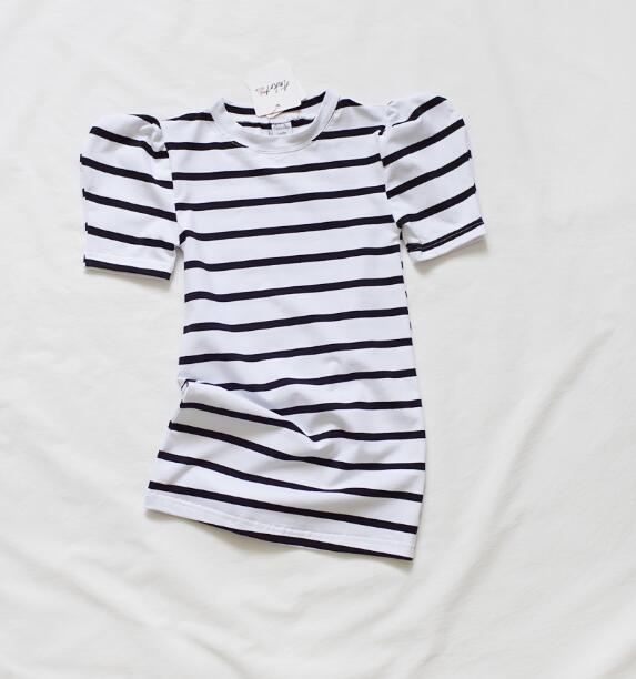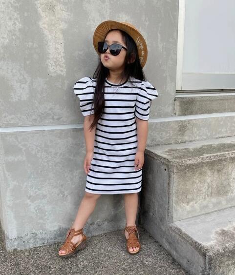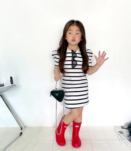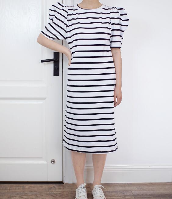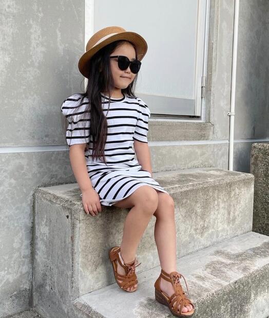 白と黒のクラシックなストライプデザインで、カジュアルからお出かけまで幅広く着回せます。