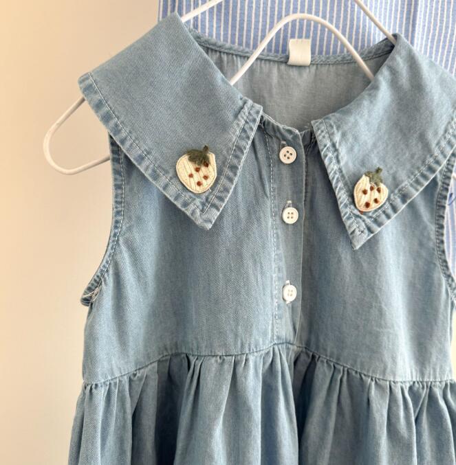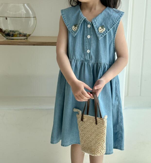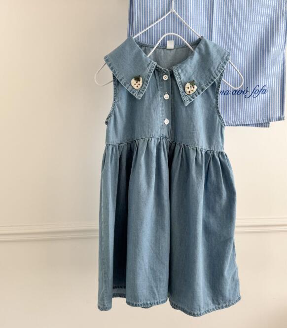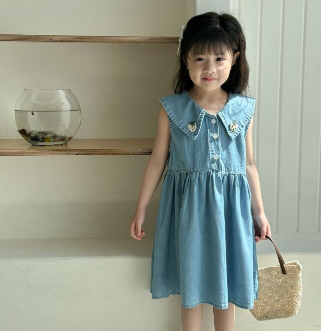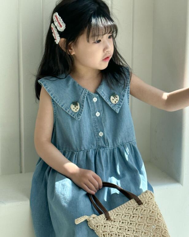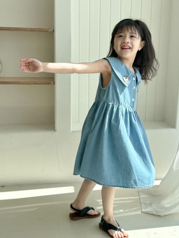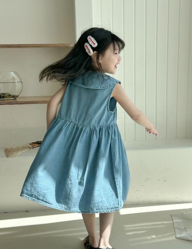 韓国風デザインが可愛いキッズ用デニムロングワンピースです。
