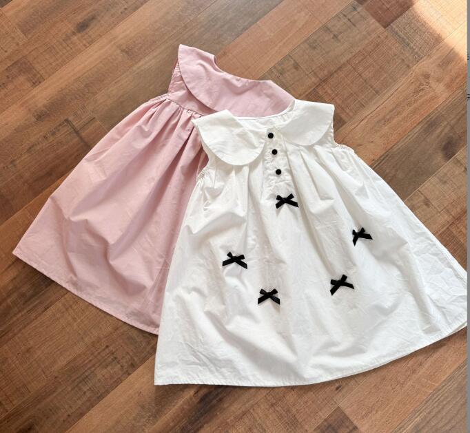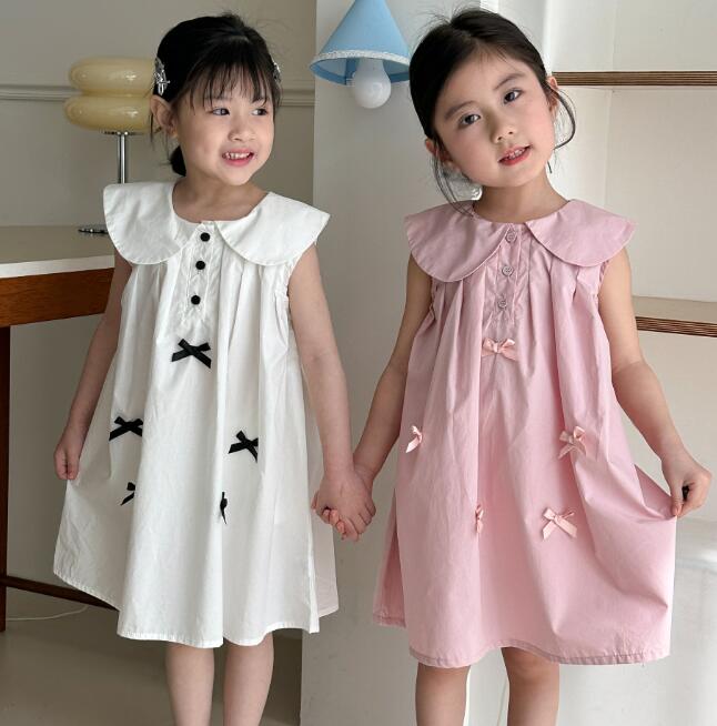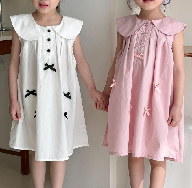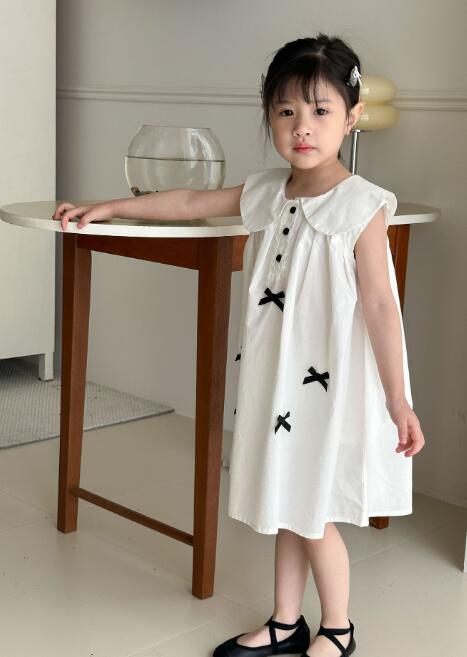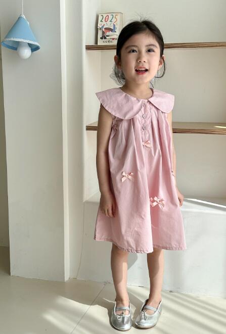 可愛い丸襟とリボン装飾が特徴的なキッズ用ロングワンピースです。
