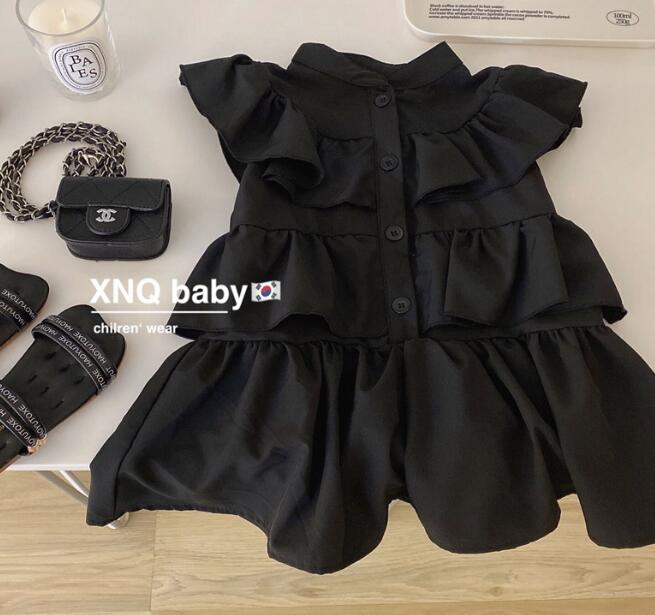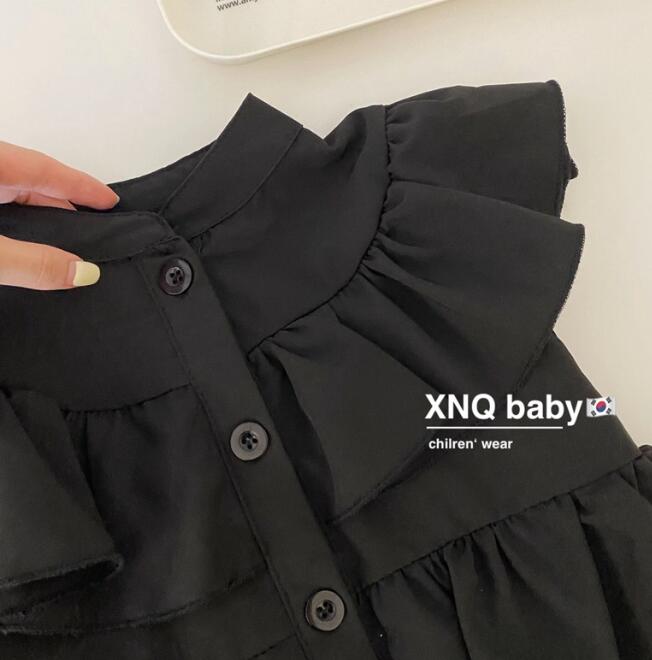 上品な黒色にたっぷりフリルが可愛らしい一枚。