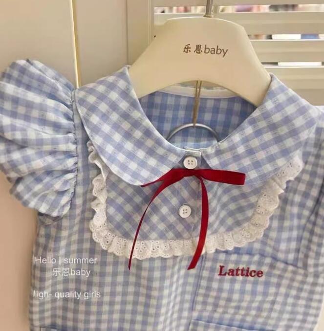 襟元のレース装飾と赤いリボンがアクセントの韓国風デザイン。