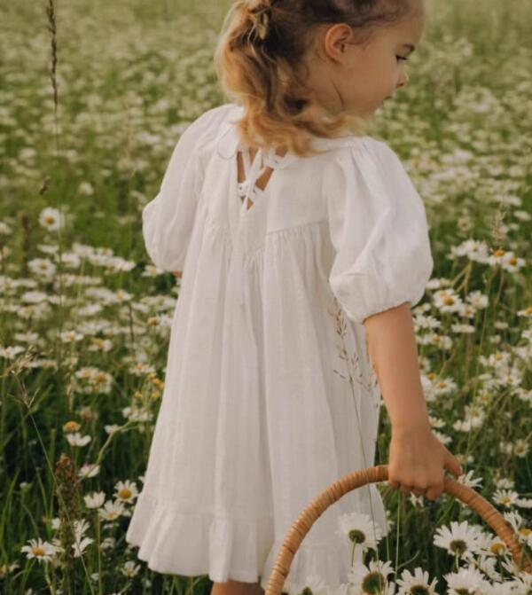 純白の柔らかな生地に背中のリボン結びがとても可愛らしいデザインです。