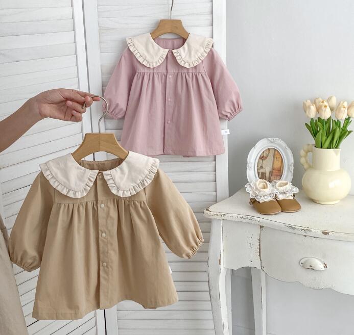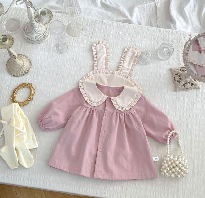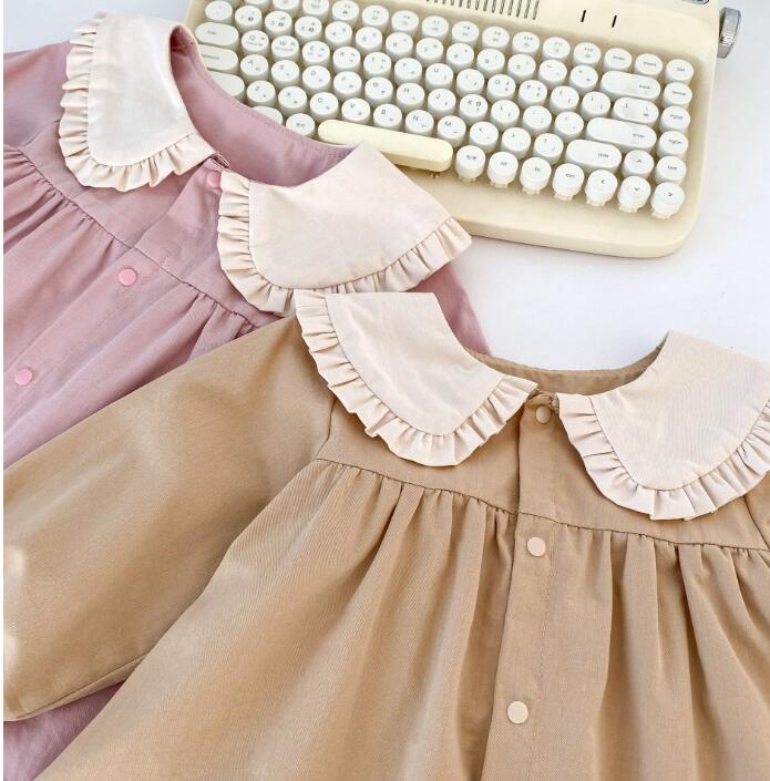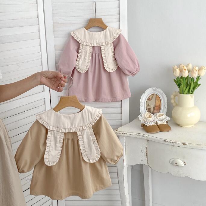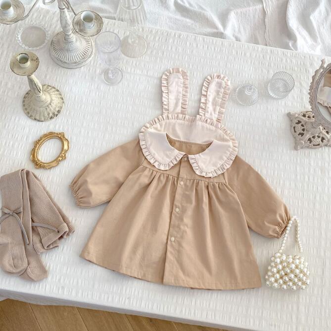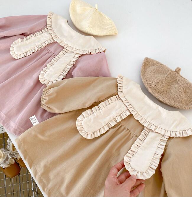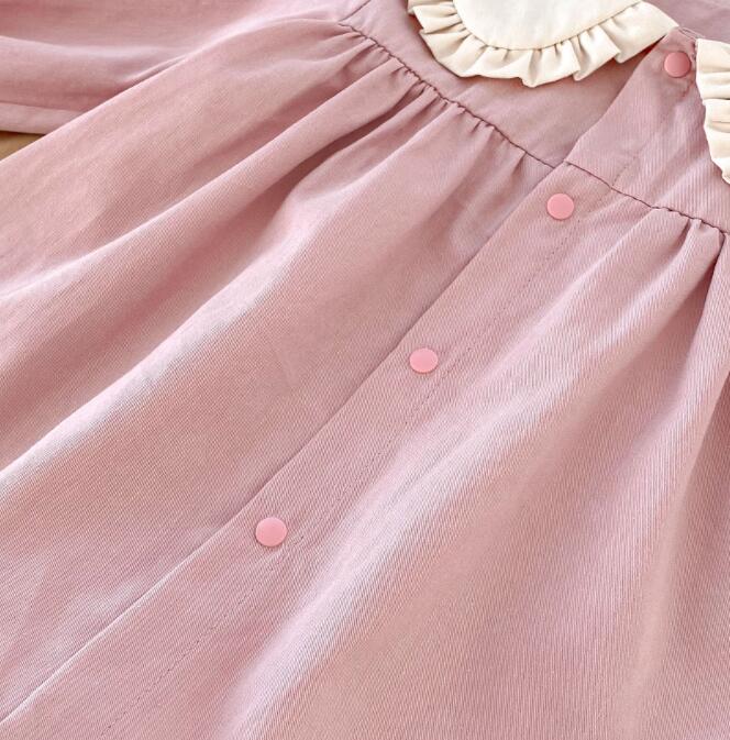可愛らしいフリル襟がポイントのキッズ用ロングワンピースです。
