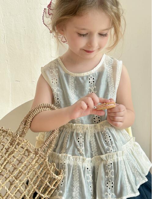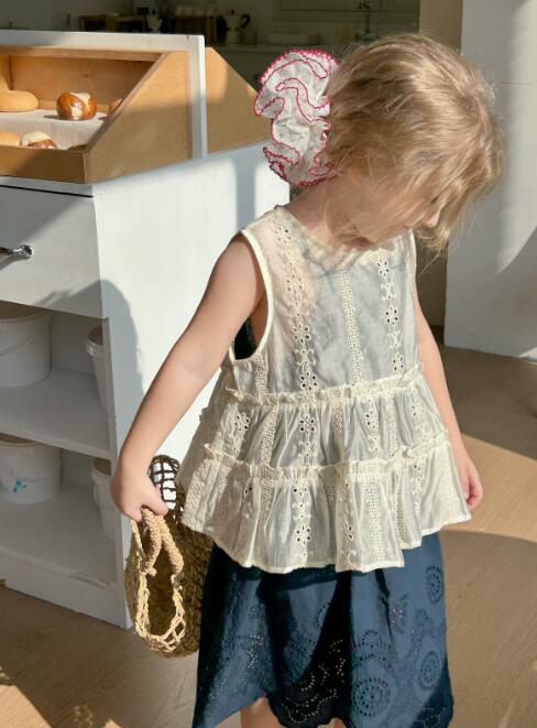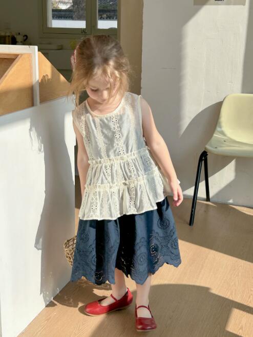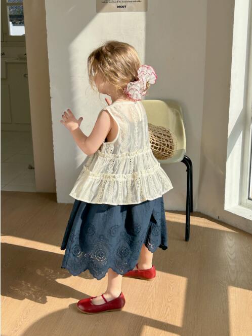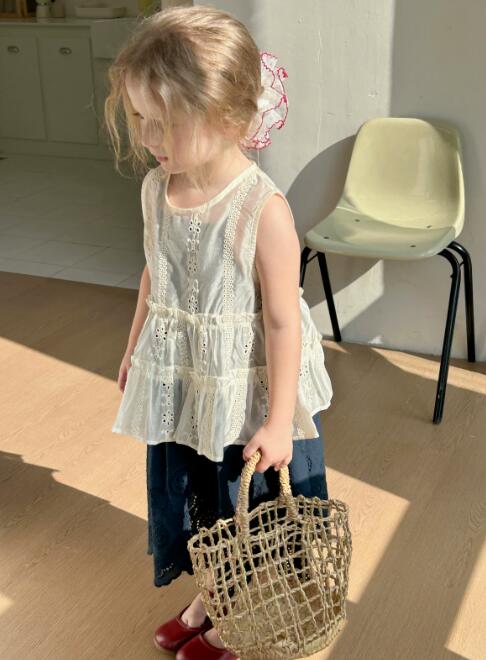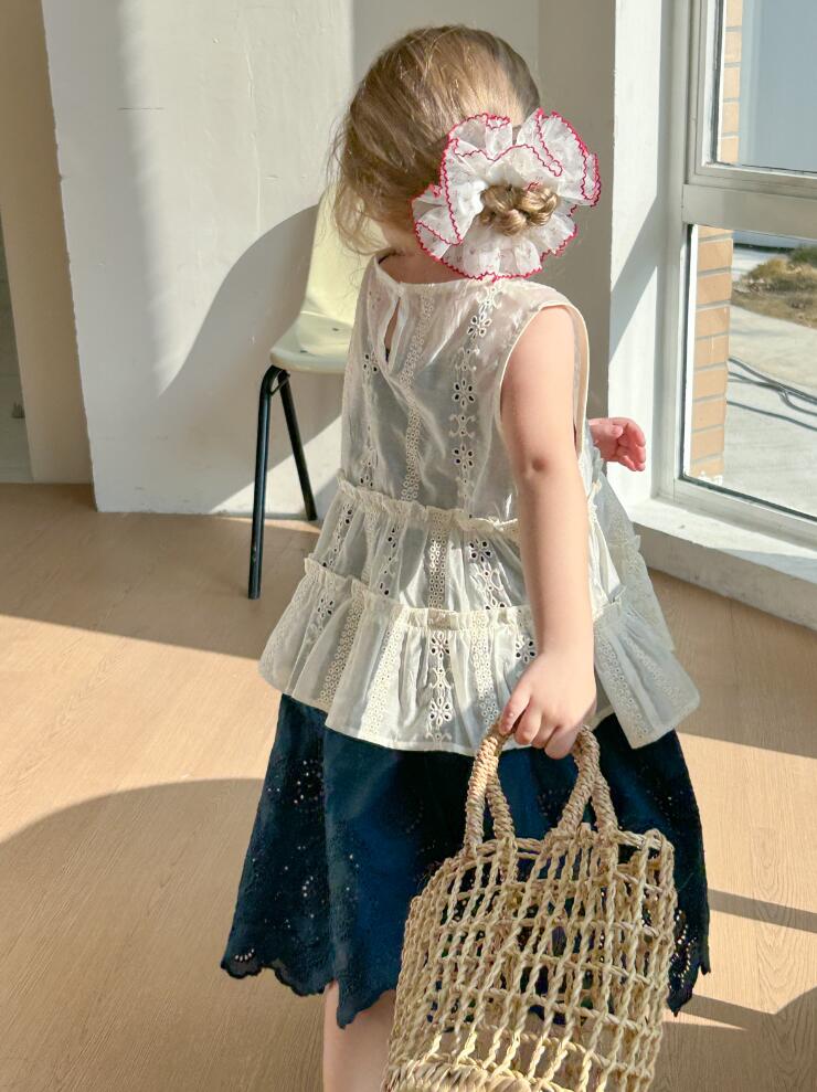 上品な刺繍レースが美しいキッズ用二点セットです。
