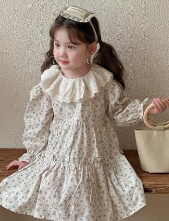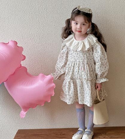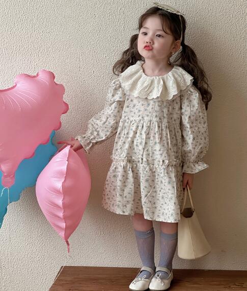 可愛い小花柄が上品な韓国風キッズロングワンピースです。