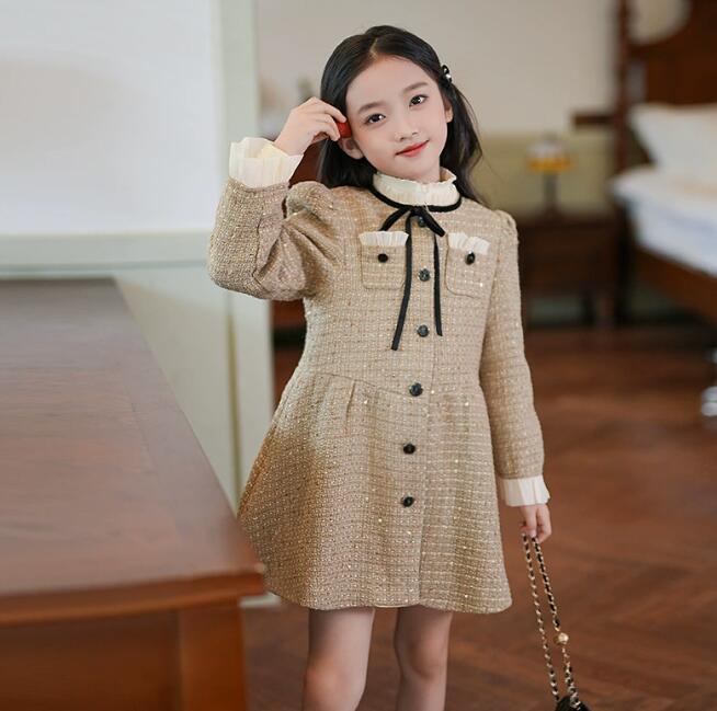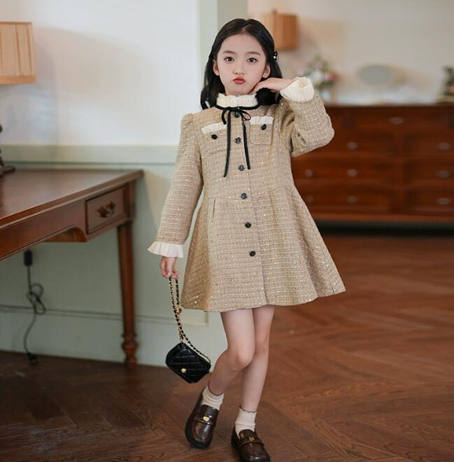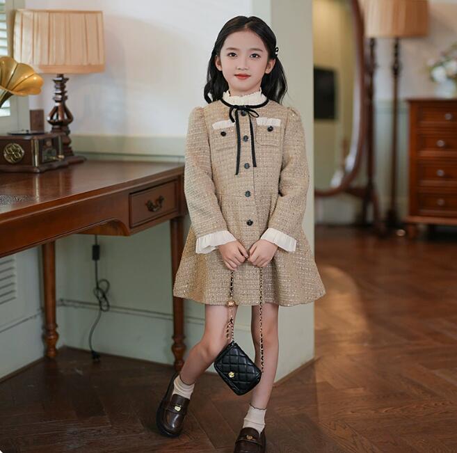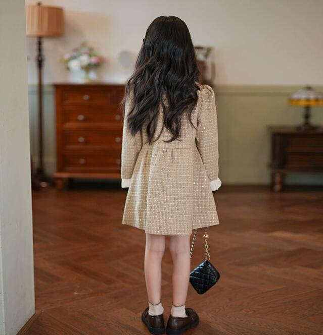 上品なツイード調素材を使用したキッズ用韓国風ロングワンピースです。