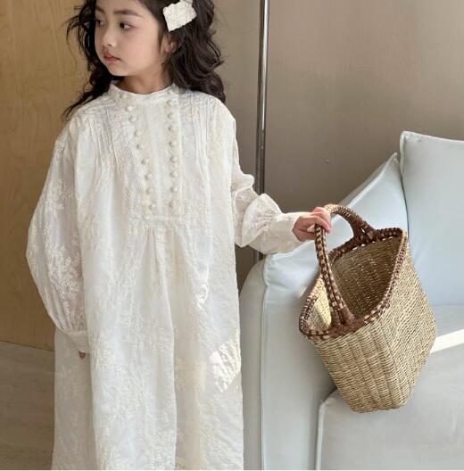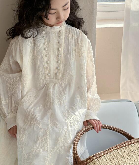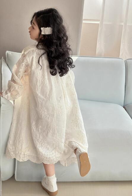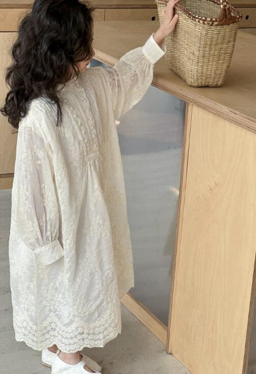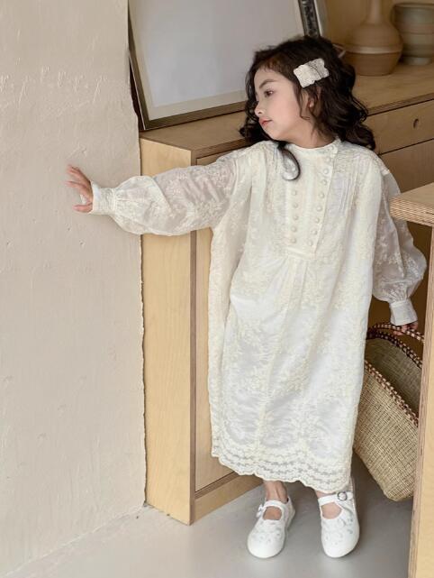 上品な白いレースが美しいキッズ用ロングワンピースです。