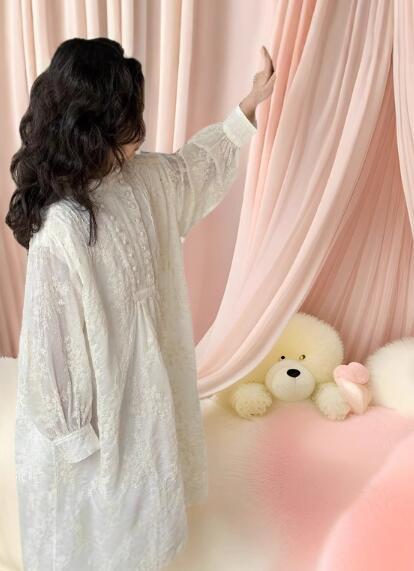 韓国風デザインで襟元のボタンとパフスリーブが可愛らしさを演出。