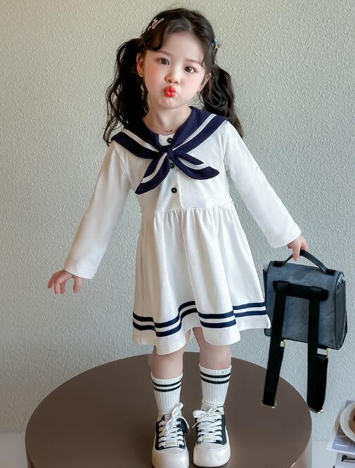 キッズ用セーラー風ロングワンピースが新登場。