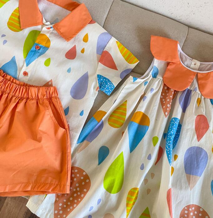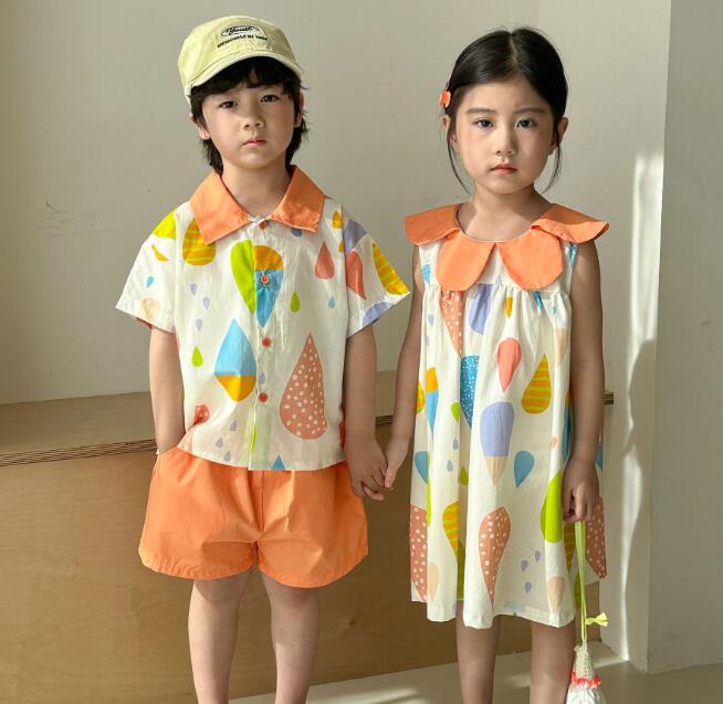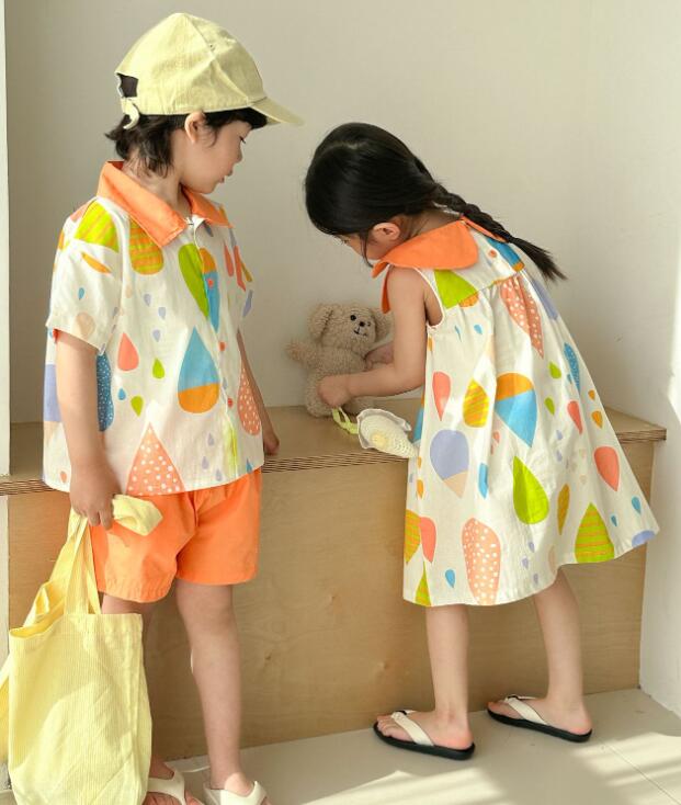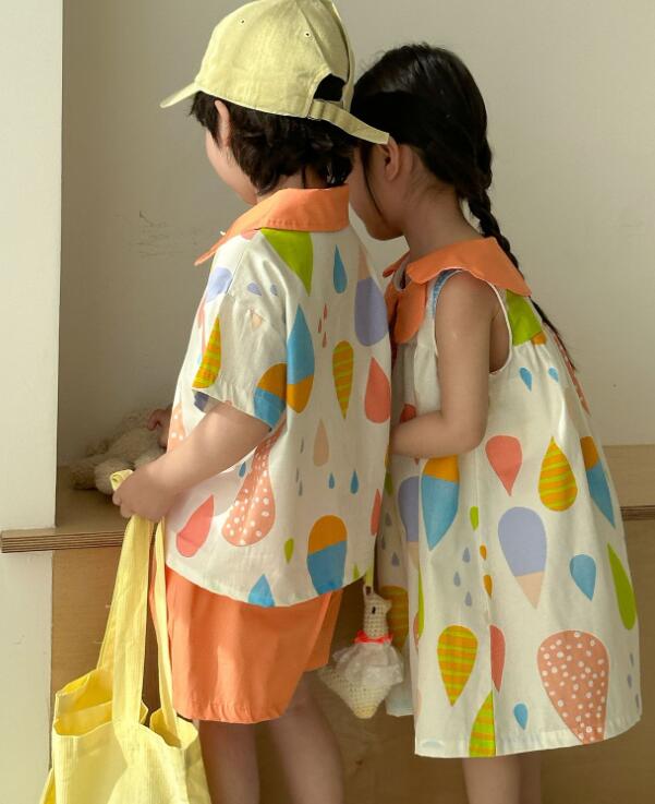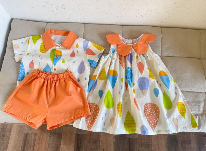 姉妹兄弟でコーディネートが楽しめる、ワンピースタイプとトップス+パンツタイプの2種類をご用意。