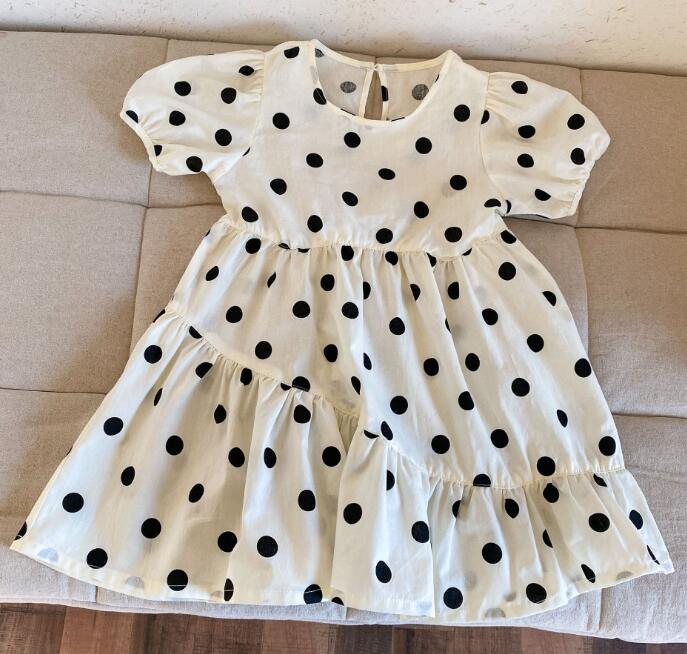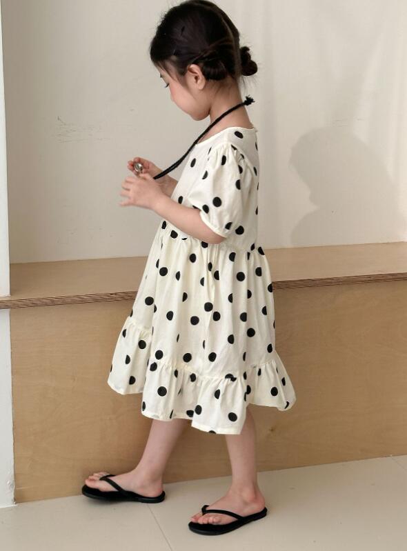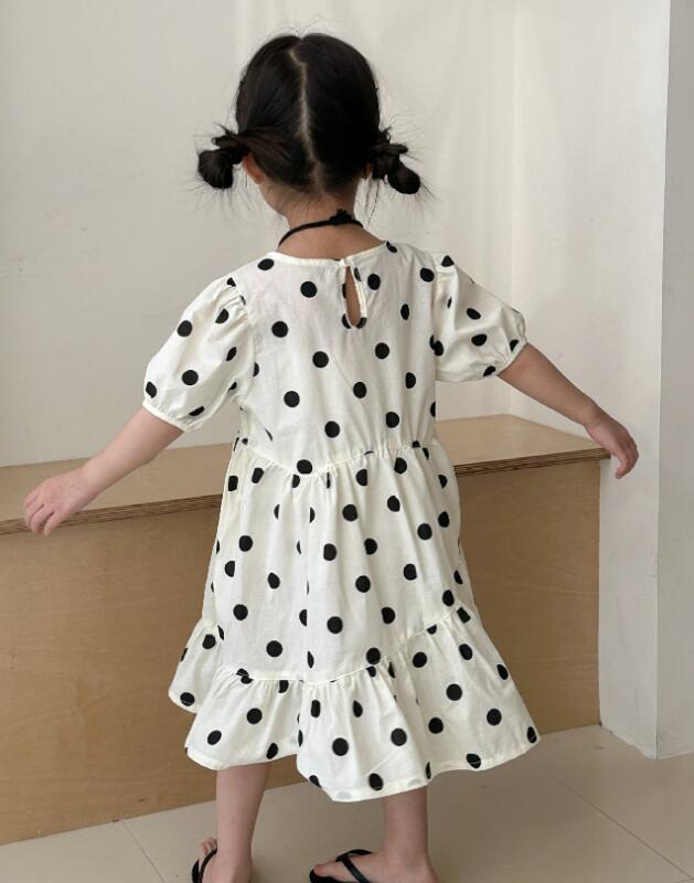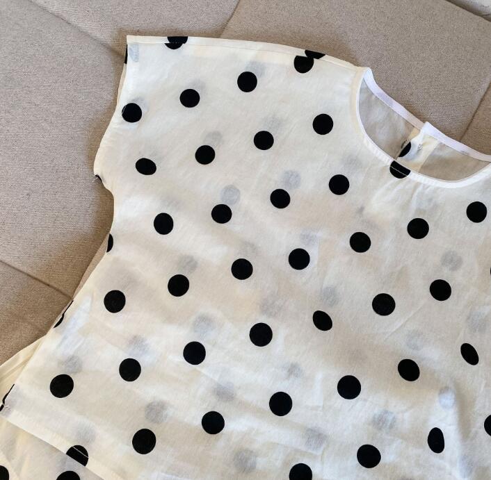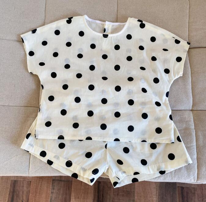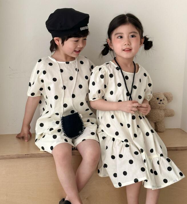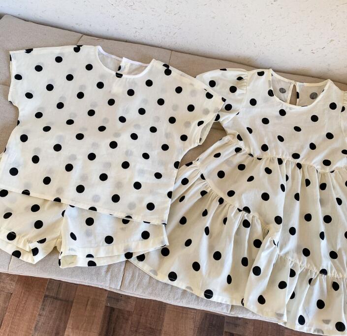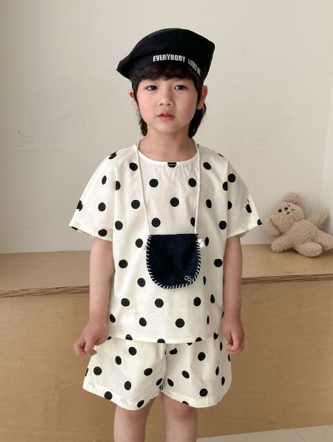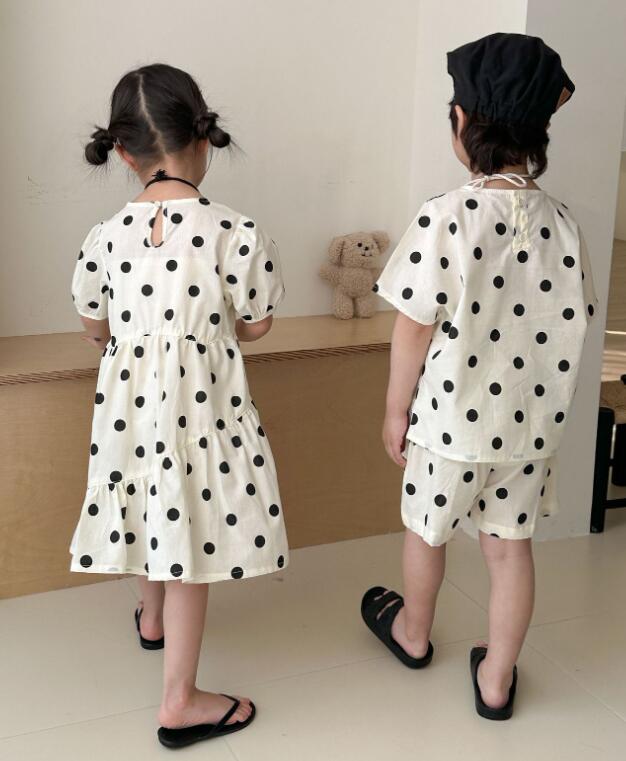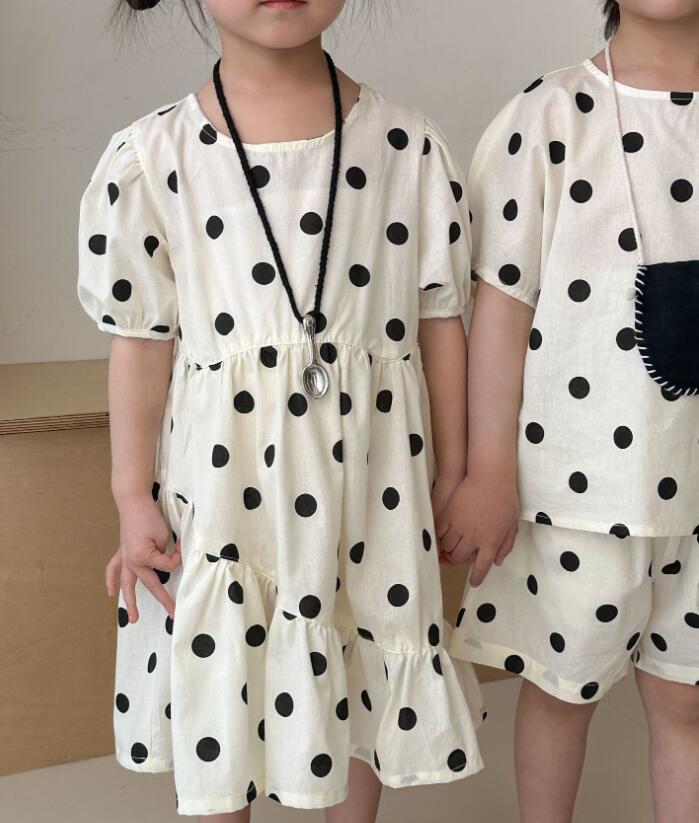 キッズ向けの可愛い水玉柄ワンピースと上下セットです。