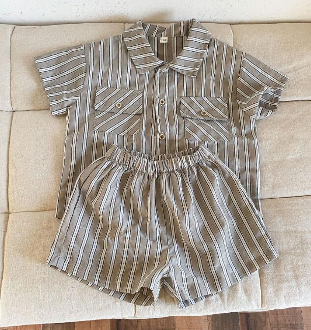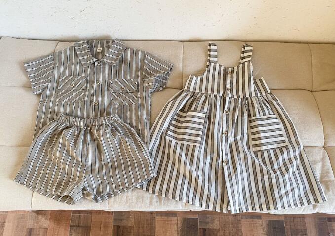 キッズ向けのおしゃれなストライプ柄コーディネートセット。