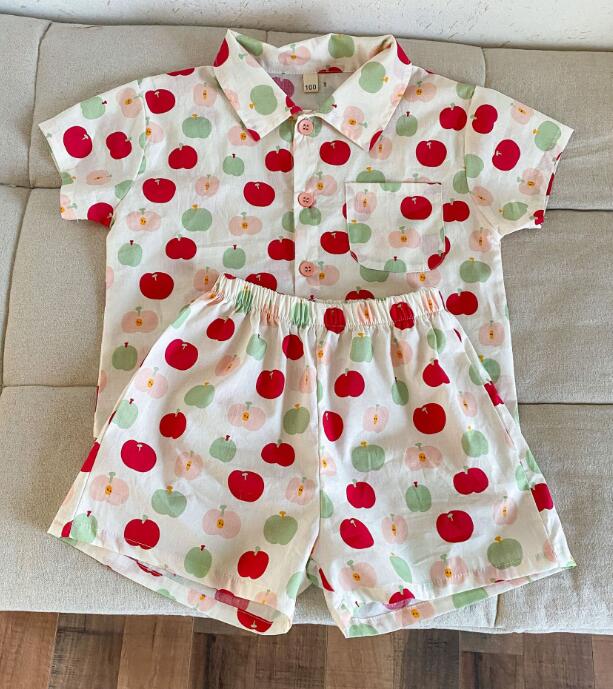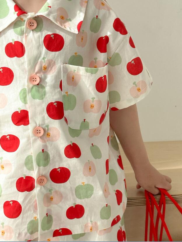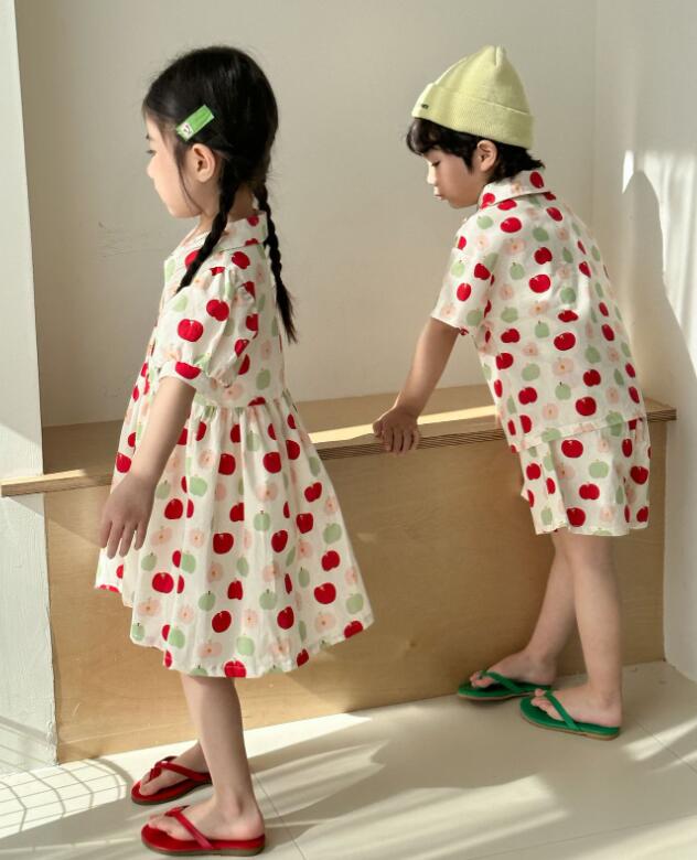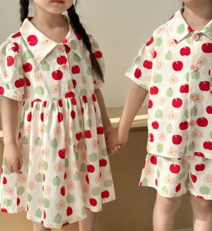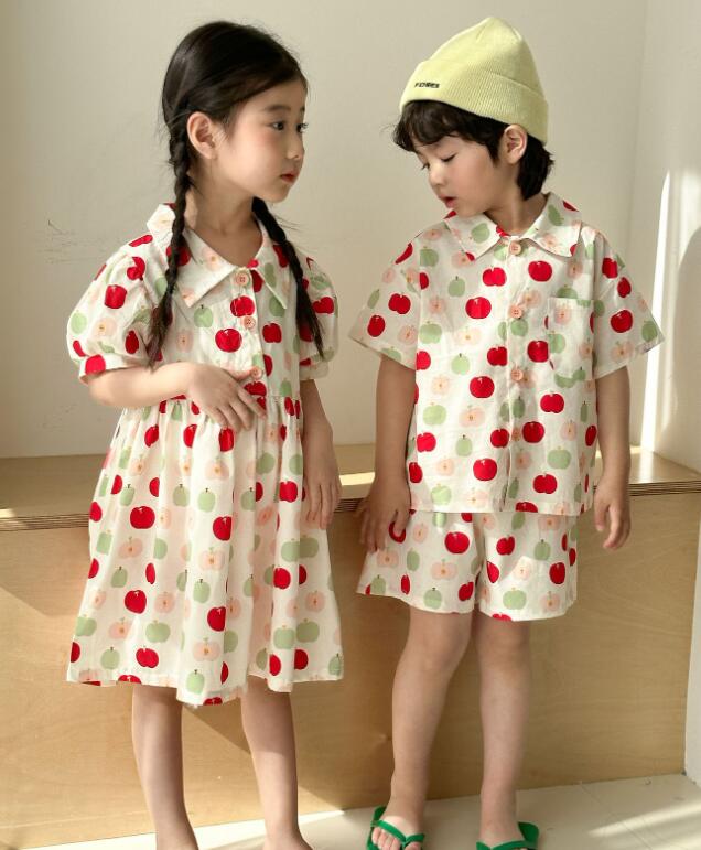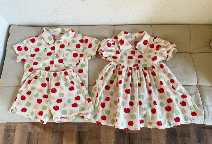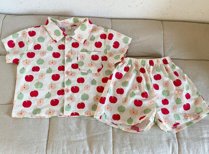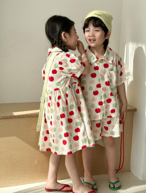 可愛いりんご柄が印象的なキッズ向け姉妹兄弟お揃いセット。