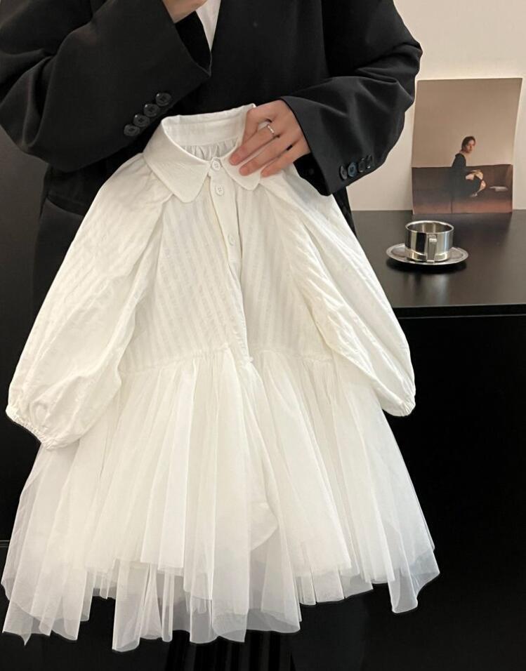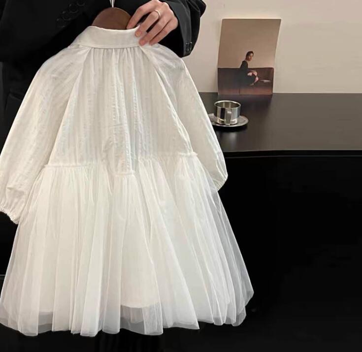 上品な白色チュールが美しいキッズ用ロングワンピースです。