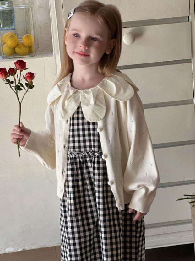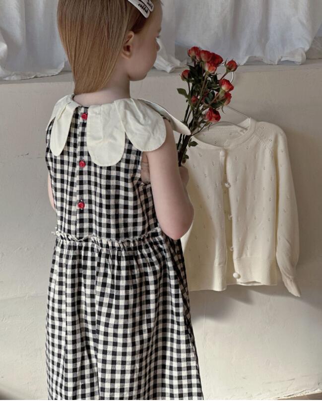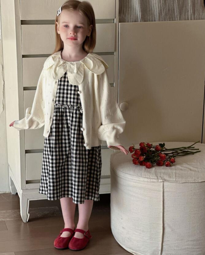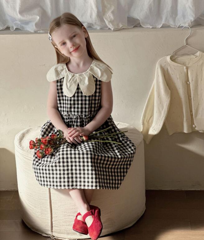 白いフリル襟とギンガムチェック柄が可愛らしく、特別な日のお出かけにぴったり。