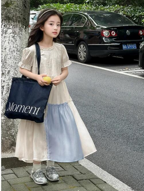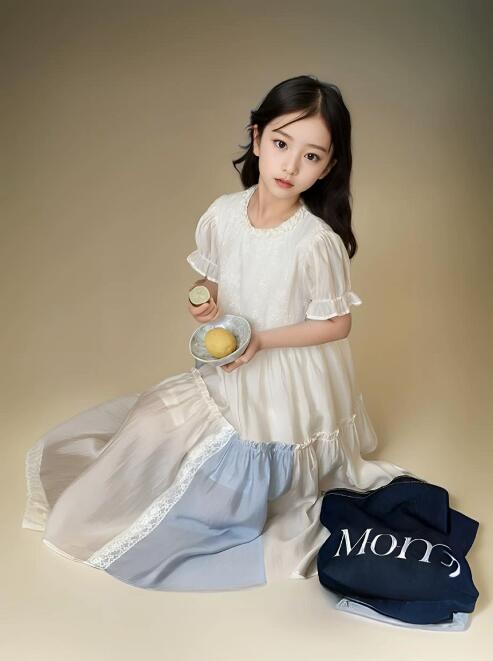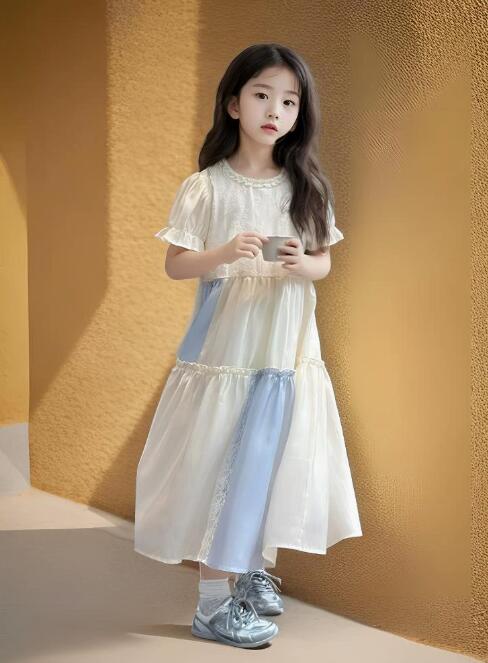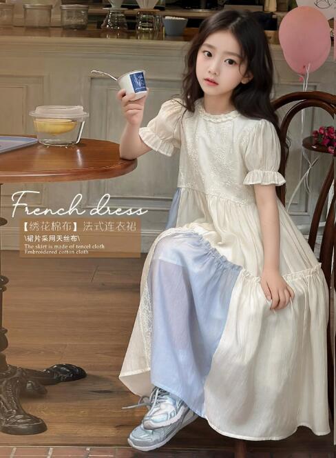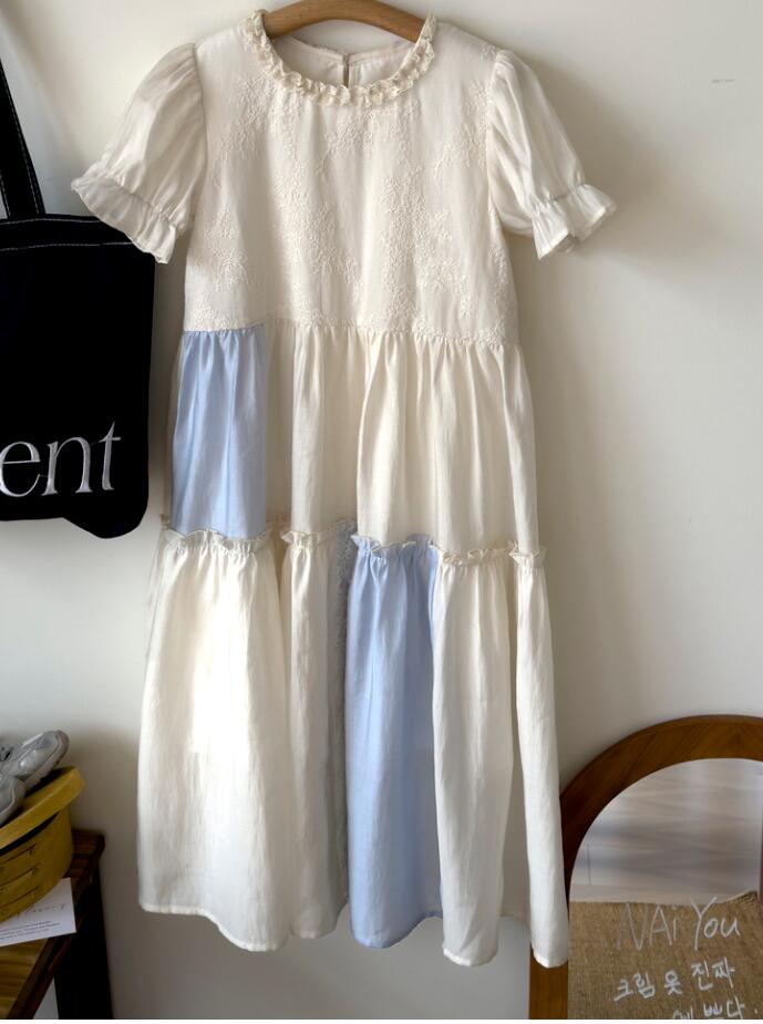 上品な刺繍とパフスリーブが可愛いキッズ用韓国風ロングワンピースです。