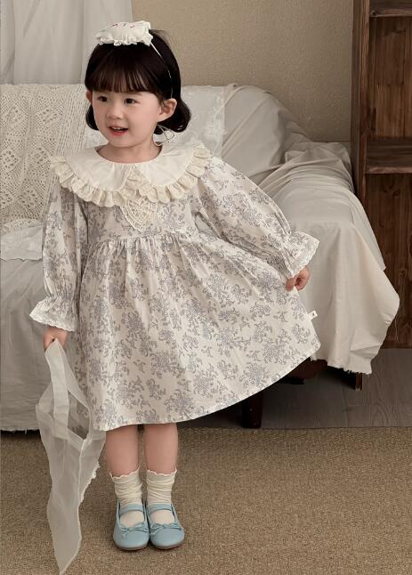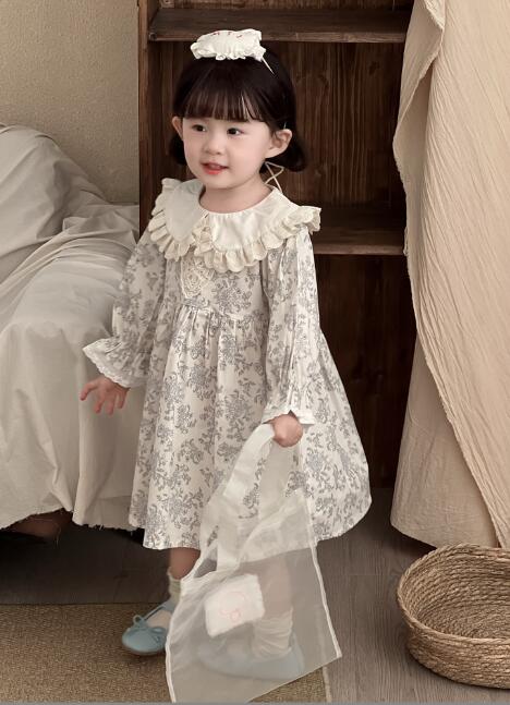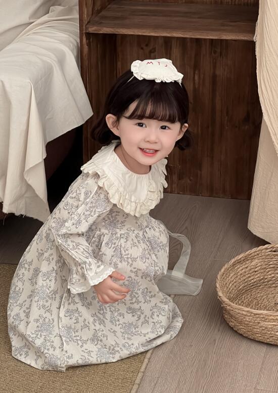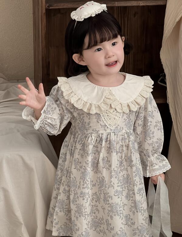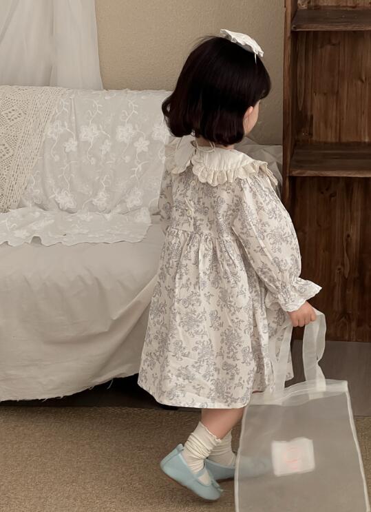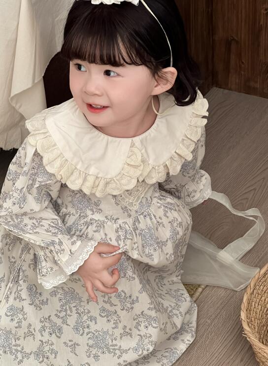 上品な花柄とフリル襟が可愛いキッズ用ロングワンピースです。