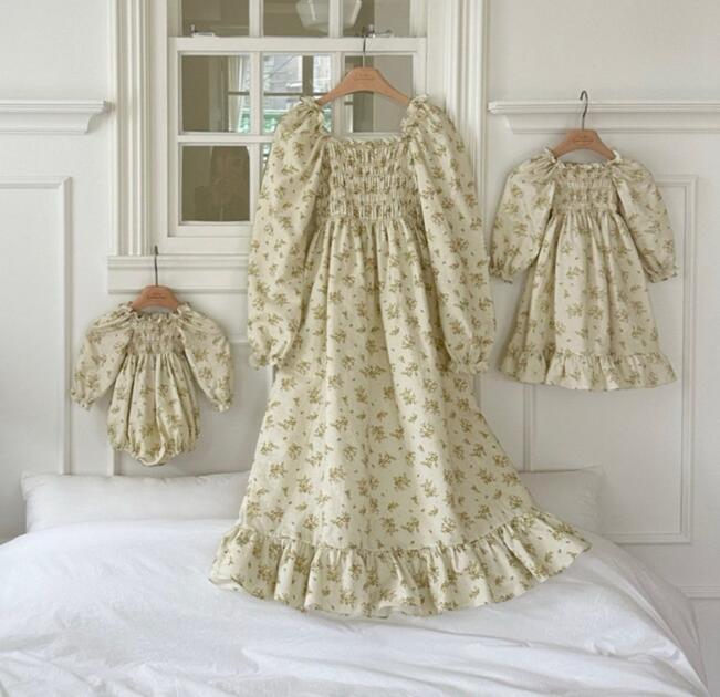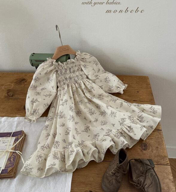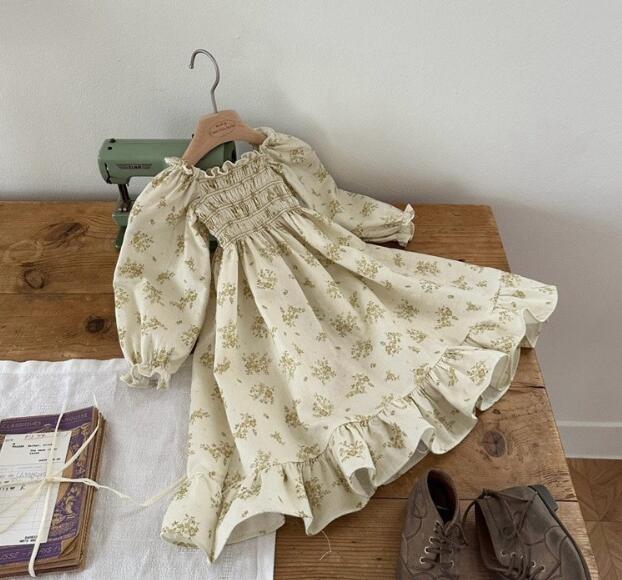 可愛らしい小花柄が魅力的なキッズ用ロングワンピース。
