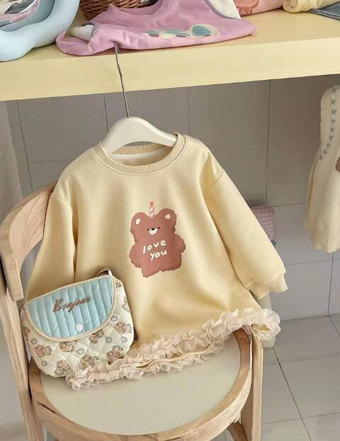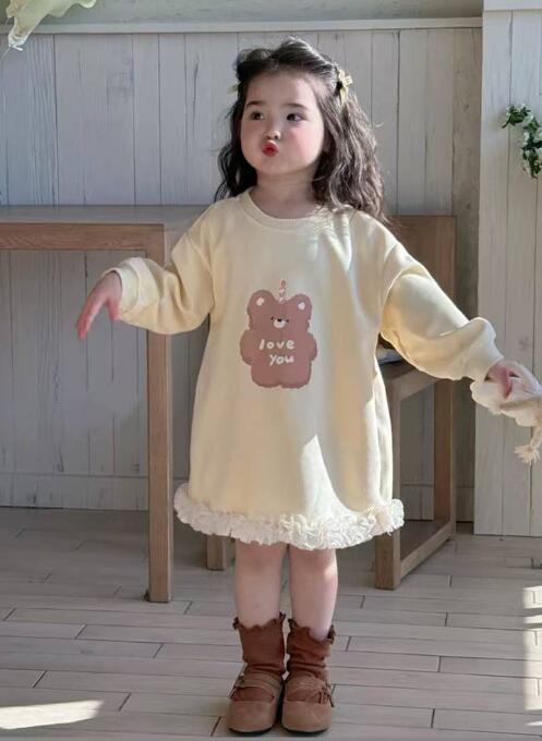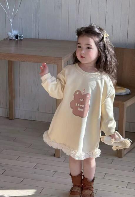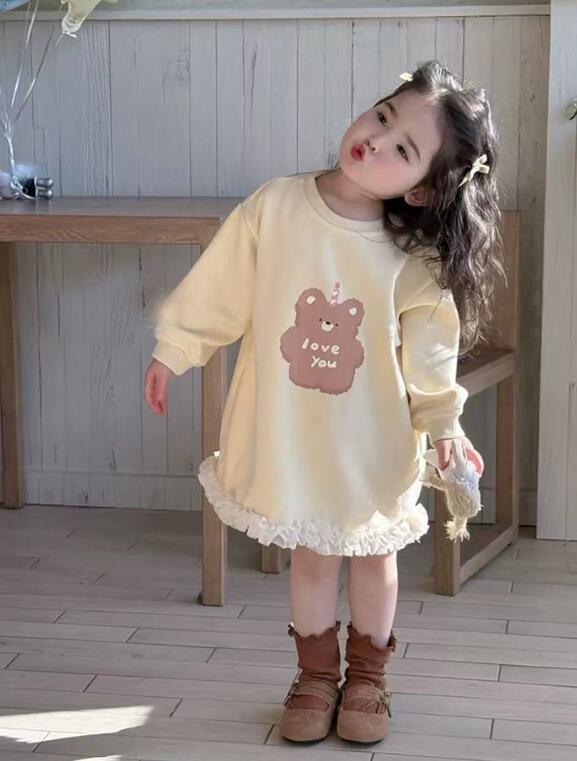 可愛いくま柄がポイントのキッズ用ロングワンピースです。