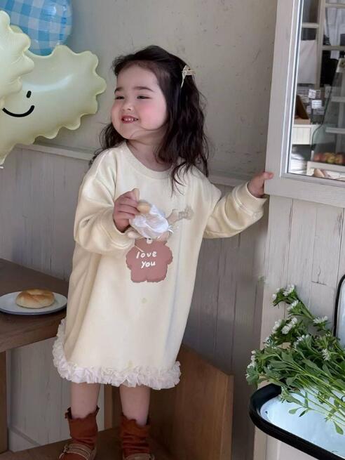 韓国風のゆったりとしたシルエットで、裾のレース装飾が上品な印象を演出します。