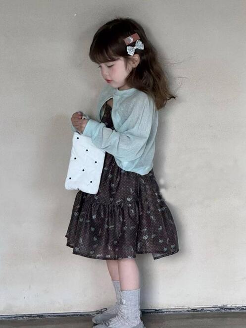 可愛い花柄が印象的なキッズ向けロングワンピースです。