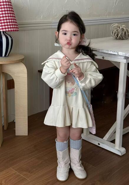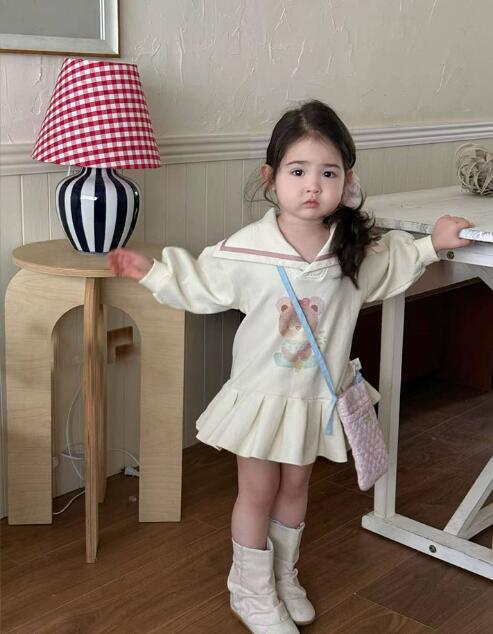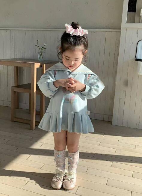 可愛らしいキッズ向けの韓国風ロングワンピースです。