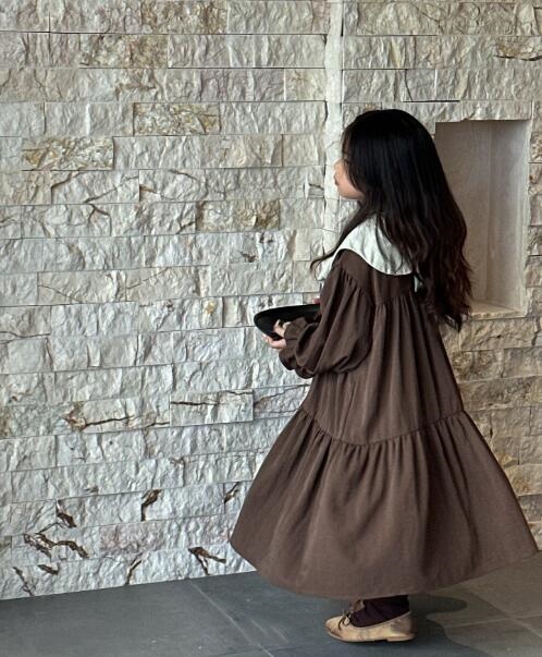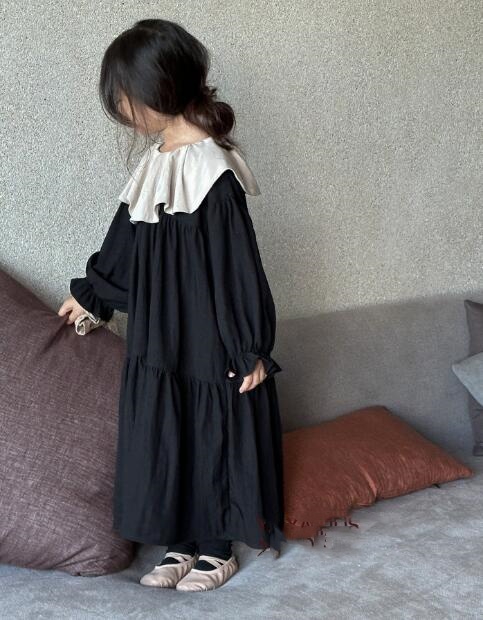 おしゃれなキッズ用韓国風ロングワンピースです。