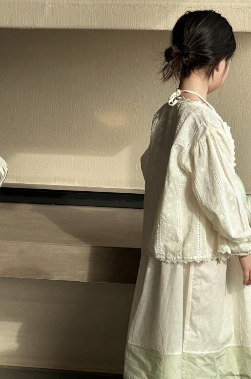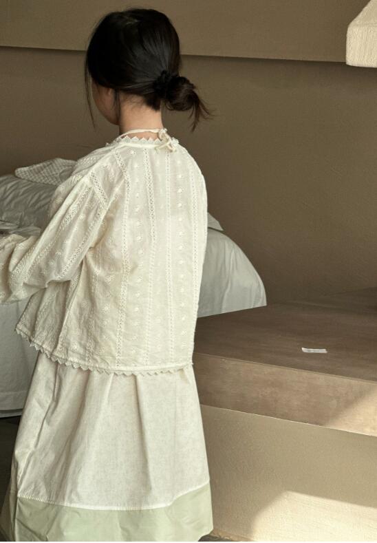 繊細なレース装飾とふんわり袖が上品な印象を演出します。