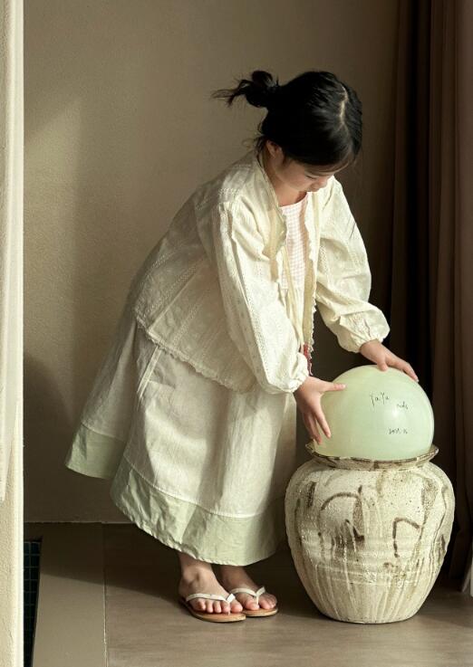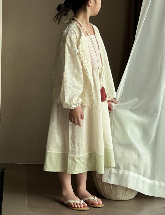 キッズ向けの韓国風デザインが可愛いロングワンピースと上着のセットです。