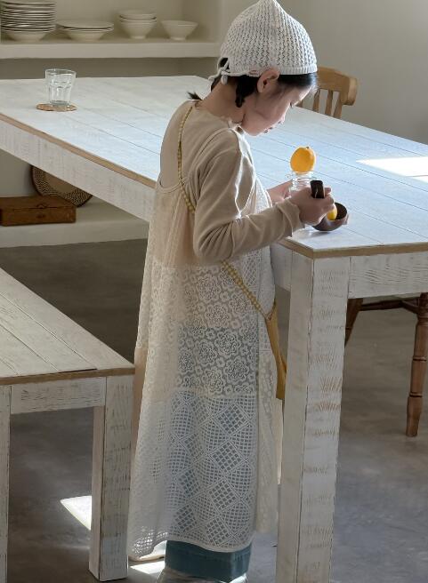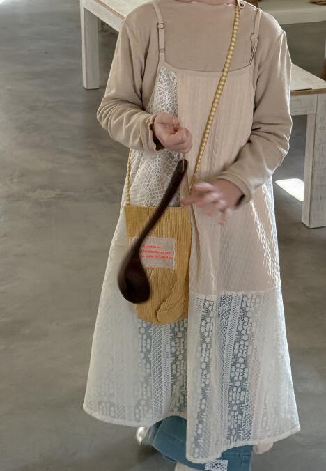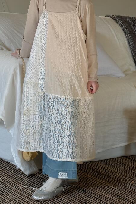 韓国風のナチュラルなデザインで、レース素材が上品な印象を演出します。