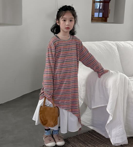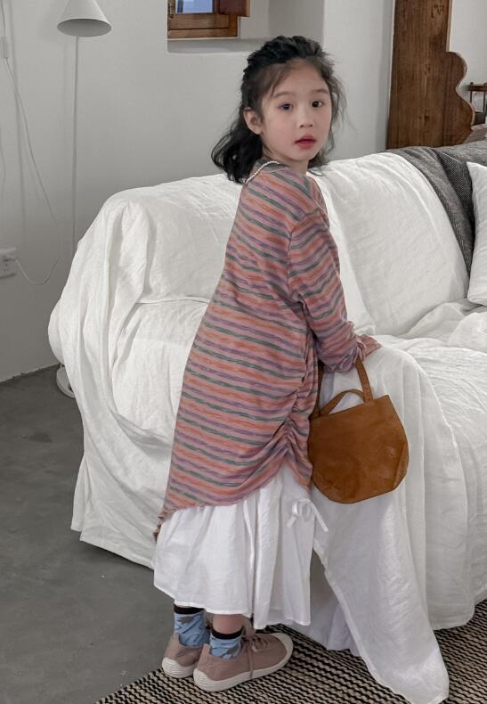 おしゃれなキッズ向けの韓国風デザインが魅力的なロングワンピースです。