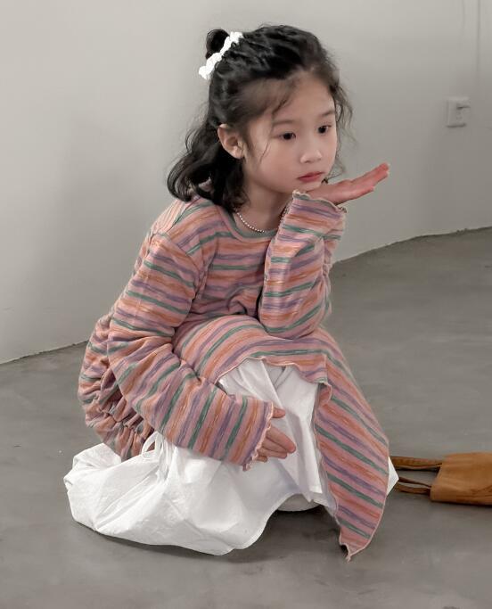 可愛らしいボーダー柄と長袖仕様で季節を問わず着回しできます。