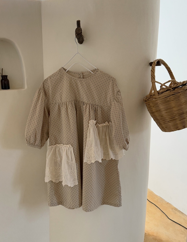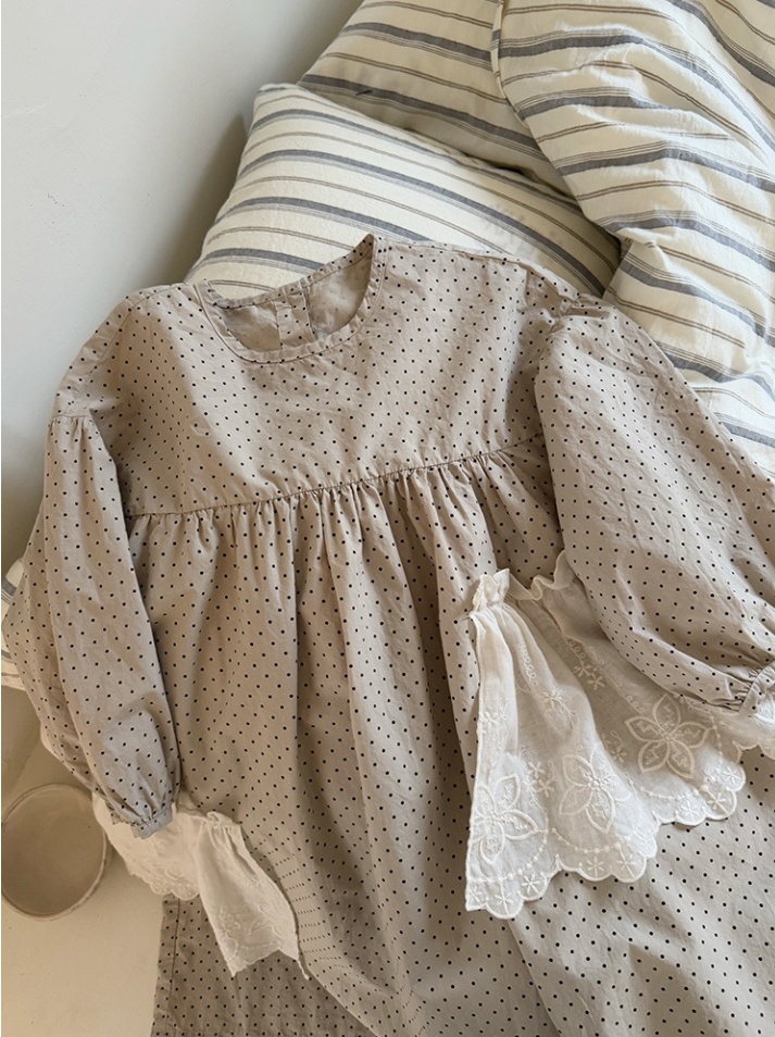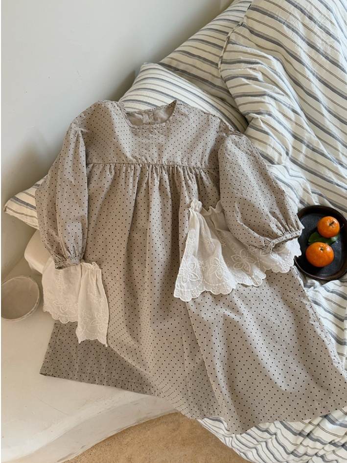 可愛らしい水玉模様が特徴的なキッズ用ロングワンピースです。