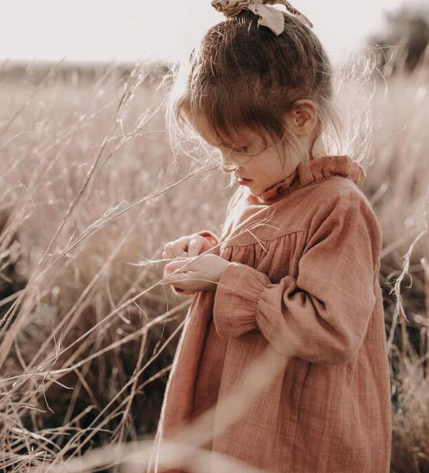 ナチュラルで上品なテラコッタカラーのキッズ用ロングワンピースです。