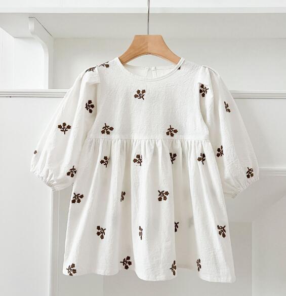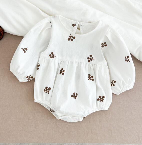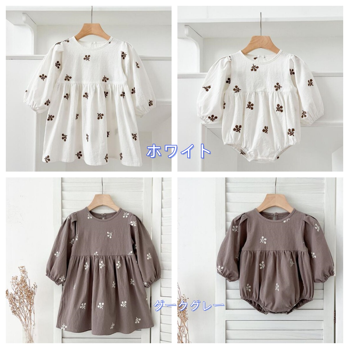 上品な花柄がプリントされたロングワンピースとロンパースの組み合わせで、特別な日のお出かけにぴったり。